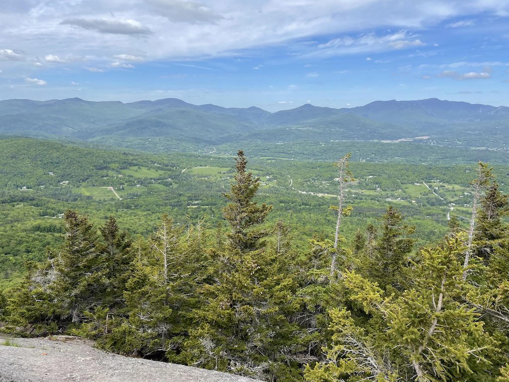 One of our goals was to get into nature and do some hiking Saturday morning, so we thumbed through our New England Hiking travel guide for ideas on where to go. We looked for “moderate” difficulty hiking trails that were in areas where rain wasn’t forecasted, and decided on the Stowe Pinnacle Trail, which ended up being quite lovely.