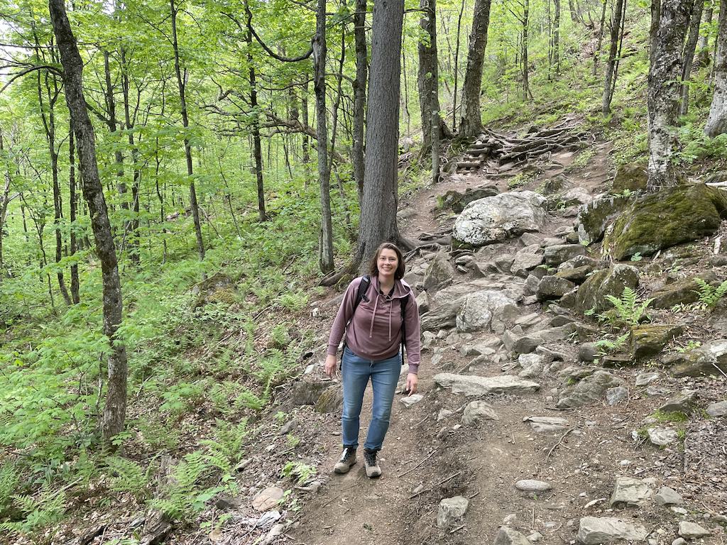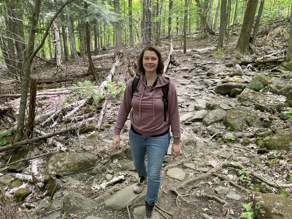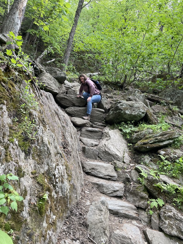 As Stowe is located in the Green Mountains, you can expect the scenery to be – green. The beginning of the trail will be somewhat rough with roots and rocks, and you will definitely feel like you are hiking through a forest. There will be plenty of shade, and I felt quite peaceful.