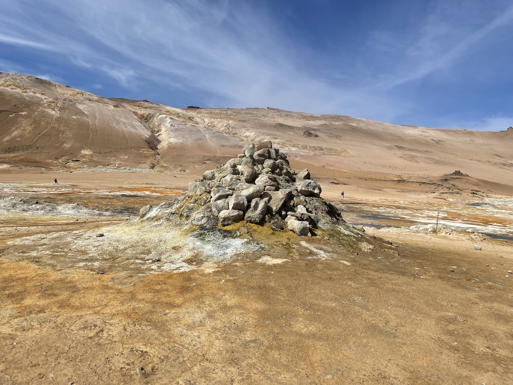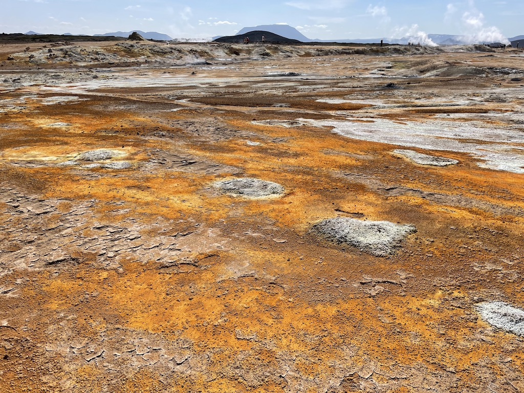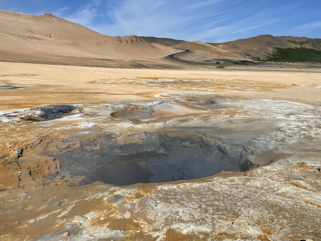Hverir, located right next to the Mývatn Nature Baths, was our next stop. The smell is quite strong, but you are guaranteed some interesting geothermal activity like the boiling mud pits below.