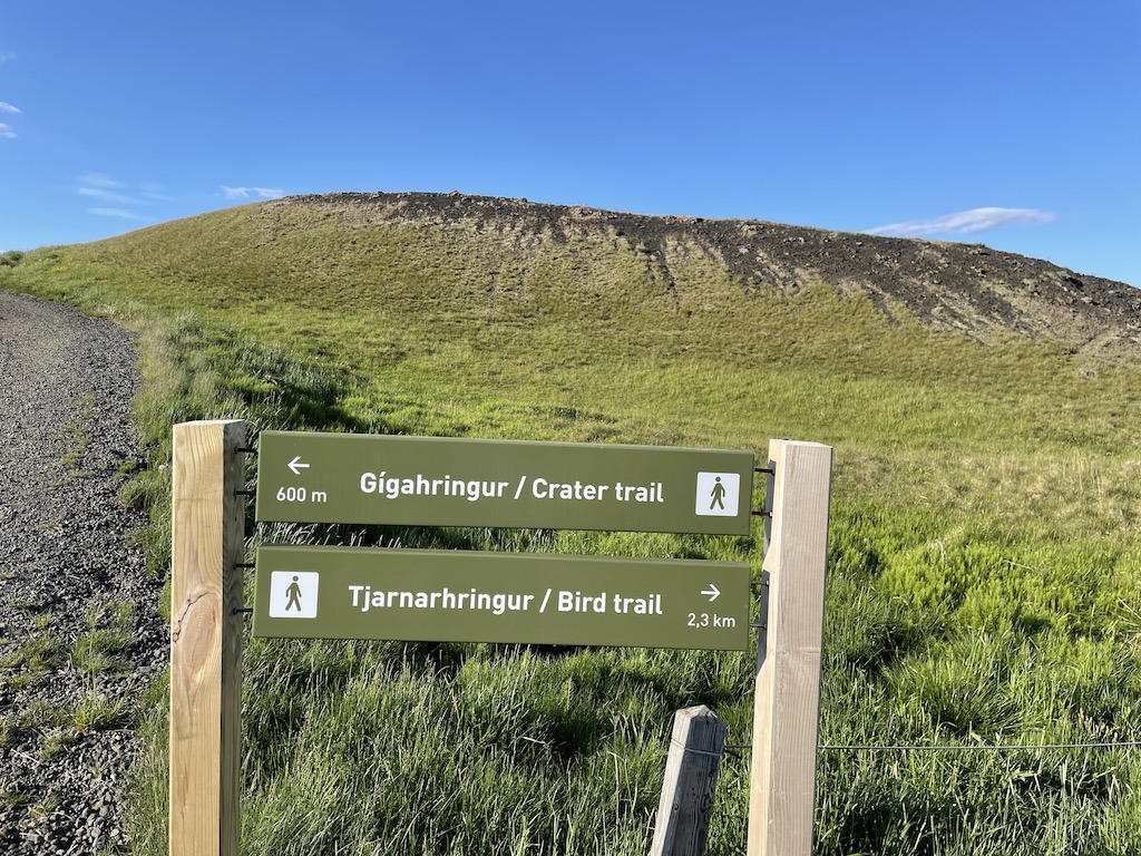 After dinner, we decided to take a stroll by the lake. There were two possible paths: the popular crater trail that takes you by the Skútustaðagígar pseudo-craters or the bird trail that takes you by the lake.