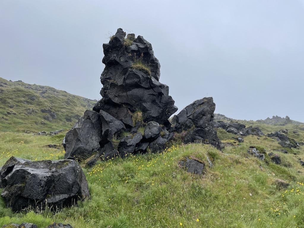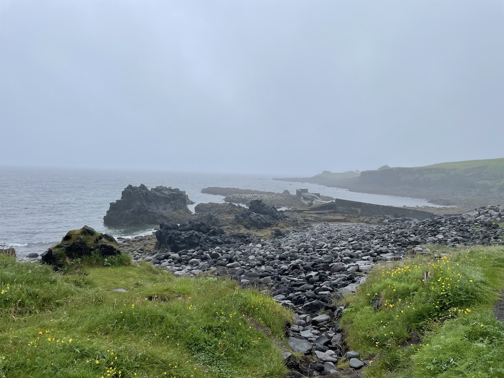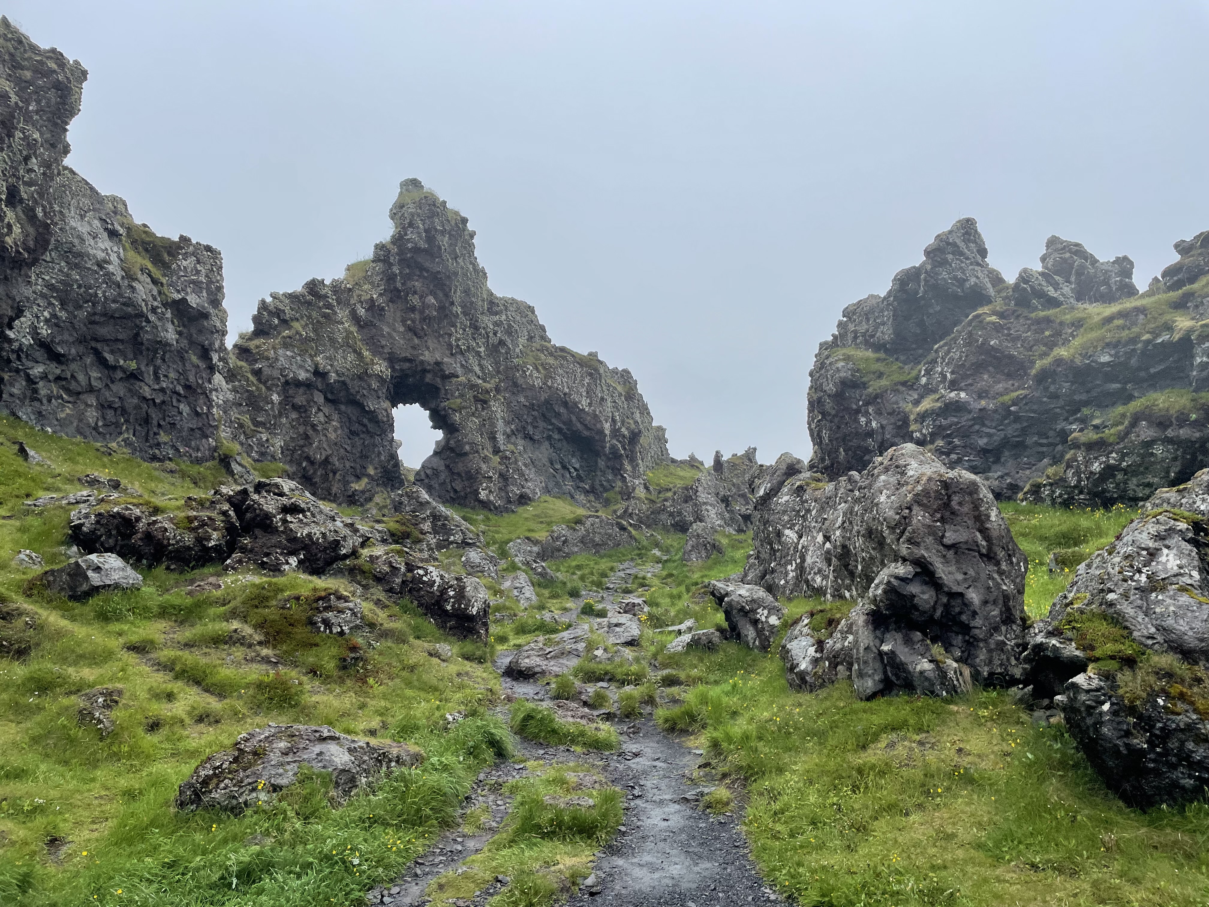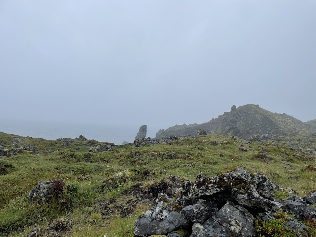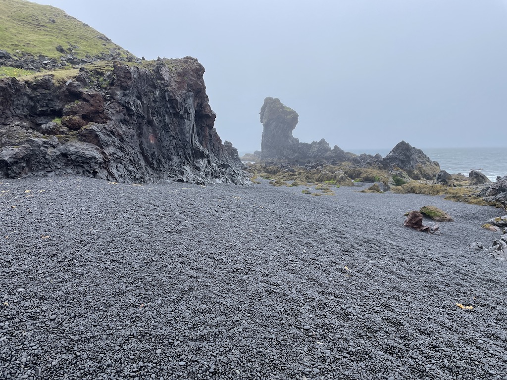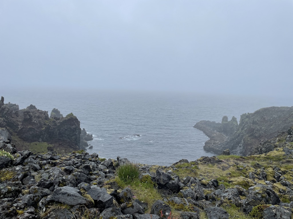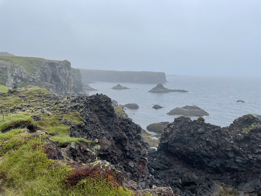 You can also start the Londrangar Sea Stacks hike here as well. We could just barely make out the forms of the sea stacks through the fog, but didn’t have enough time to hike 15 minutes each way to get there and back. We thought about coming back after our cave tour, but as it turns out the fog had become more significant and we didn’t think it would be worth hiking.