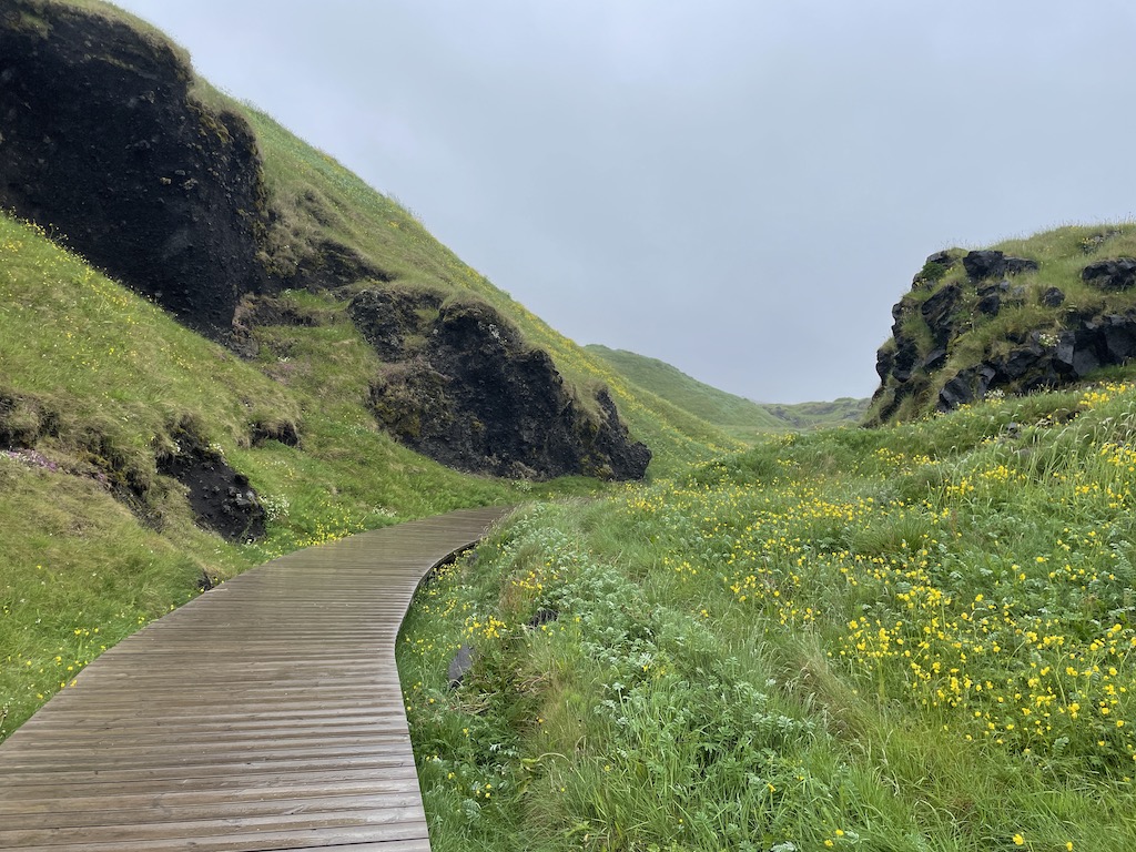 From this statue, there are plenty of wide, flat paths with very little incline that are perfect for a family that wants stroller accessibility. However, if you continue towards the town of Hellnar, you will get more fully into nature and the path will turn much narrower and rockier, but still will have minimal incline.