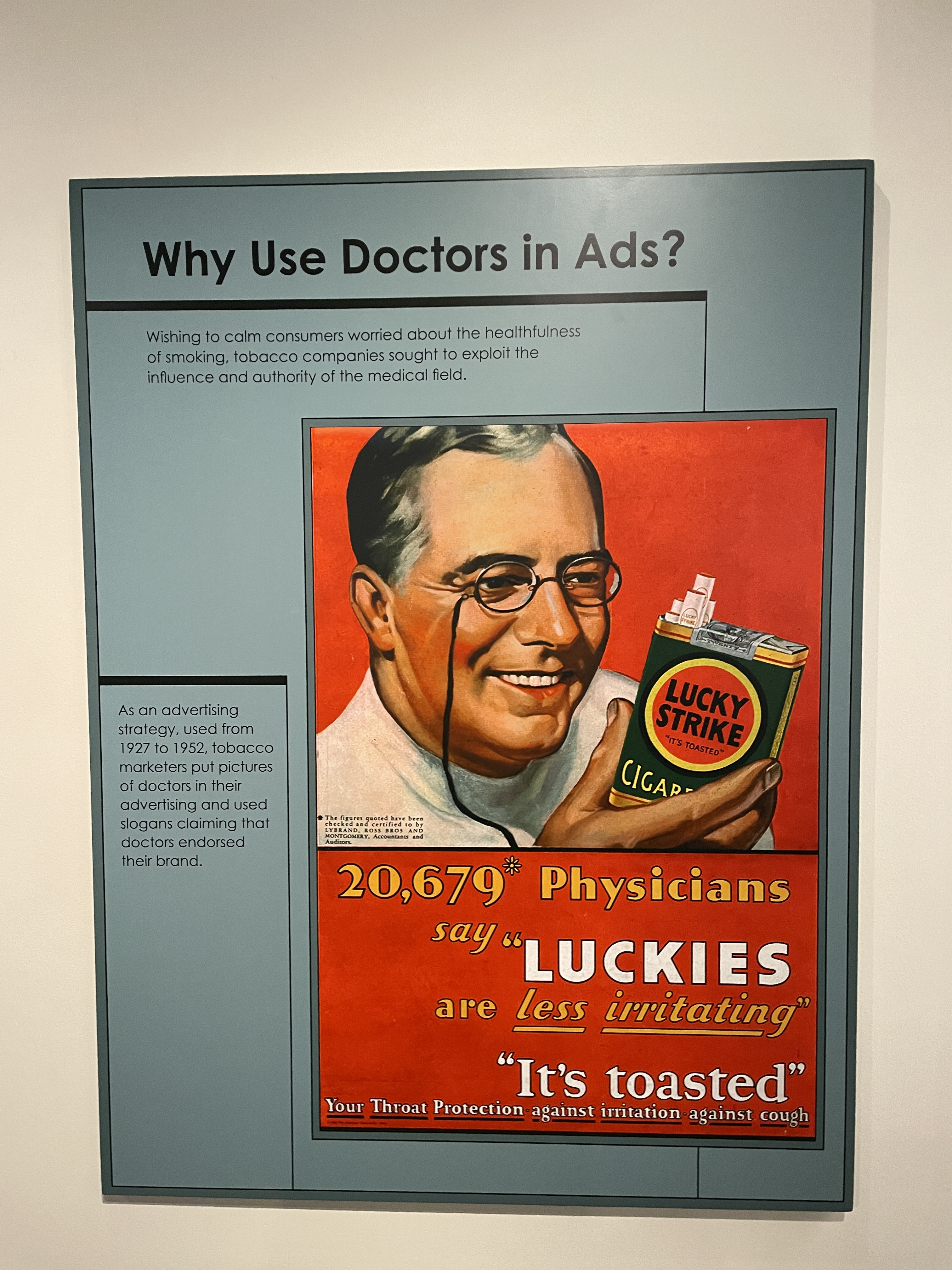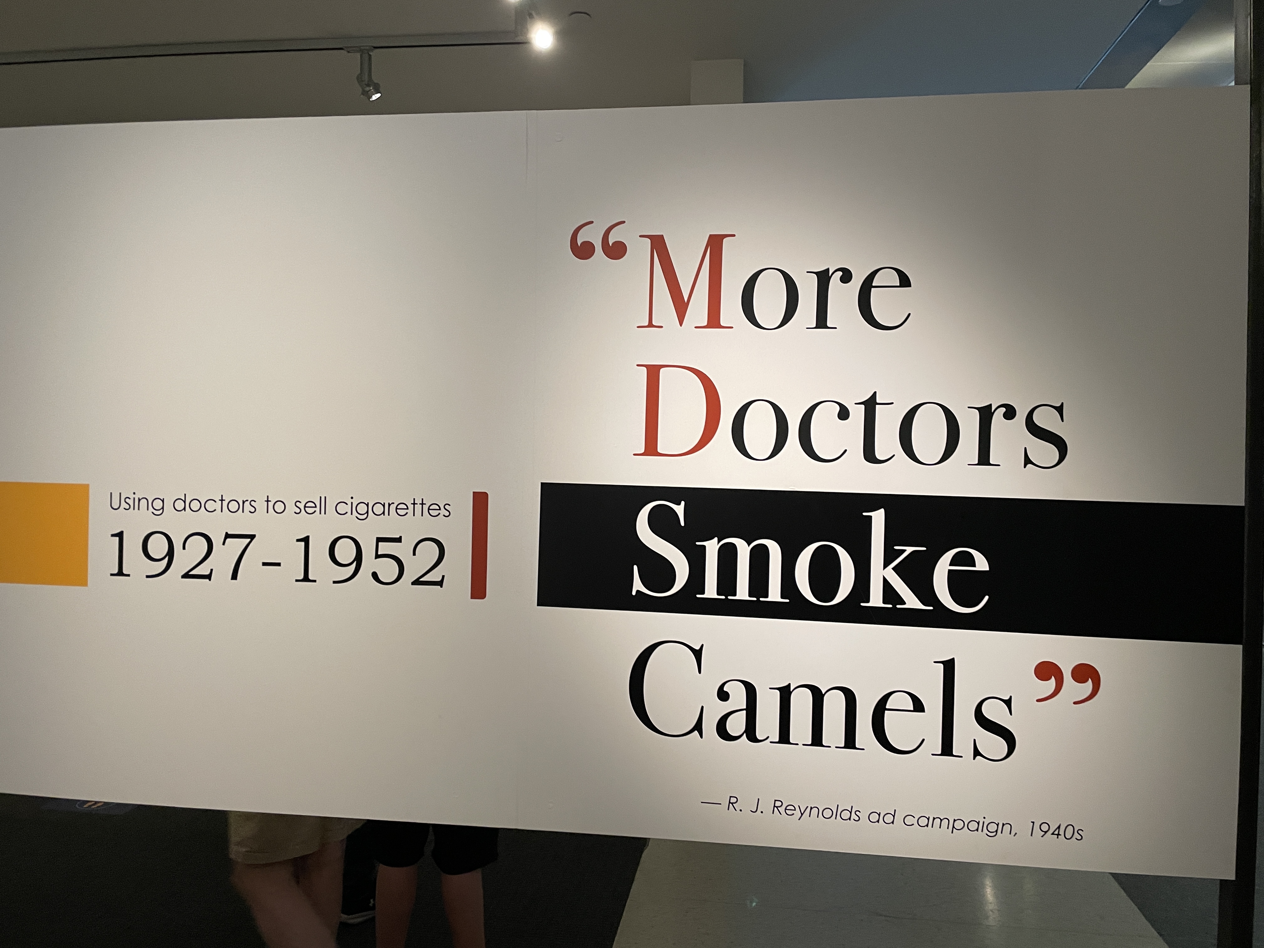 This museum also shows other pictures of American life. One interesting exhibit dealt with American’s prior attitudes toward smoking.