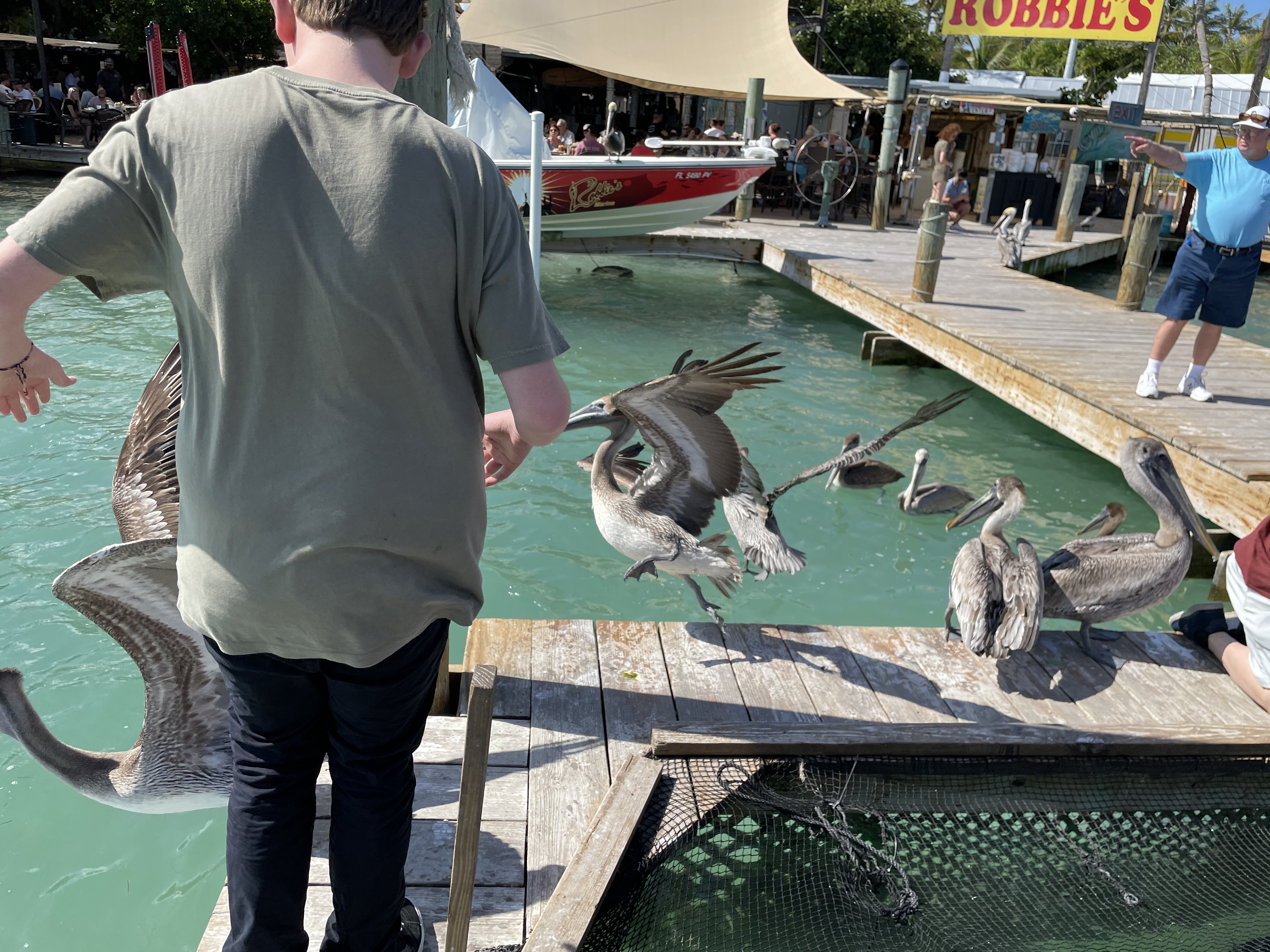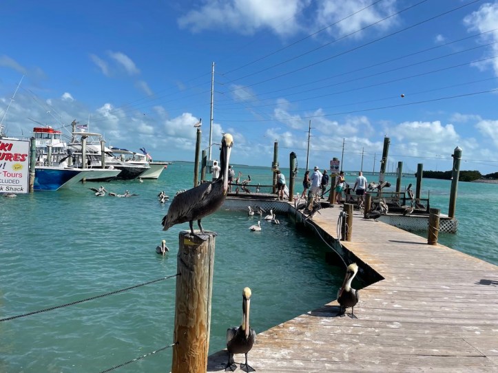 We bought 4 buckets of fish, but once we made our way to the dock, we realized that the “aggressive” pelicans were a real problem! They were hungry for fish and not afraid to let you know it.