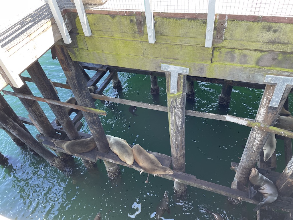 Once you reach the end of the wharf, make sure you get a good look at the sea lions fighting for rights to a beam to rest.