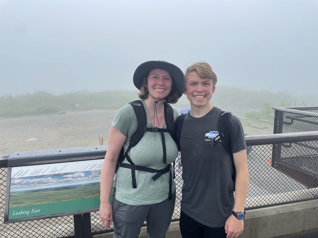 At the top, we wandered around a bit and got a few pictures, but it was quite foggy and the views were mostly non-existent. Note how mountain heights are shorter in the Northeast than on the West Coast.