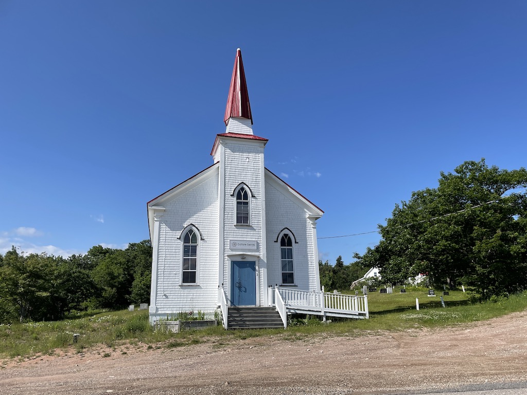 Upon reaching Cape North, we saw a “church” that turned out to be a “cultural center”. I convinced Jeremy to stop and take a picture, not realizing that it was at the junction that would take us our intended direction, or further north.