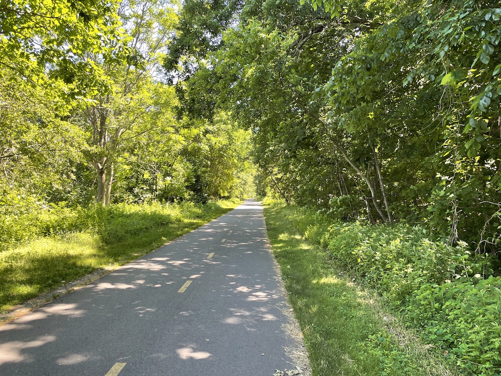 My first experience with this trail was 20 years ago, while dating my now-husband. He was into biking to the point that he would occasionally bike the Boston Marathon route round trip! Knowing that I was not up to that, he suggested a “shorter” bike ride of 10 miles. He neglected to clarify “each way.” I made it back, but it was more than I’d expected.