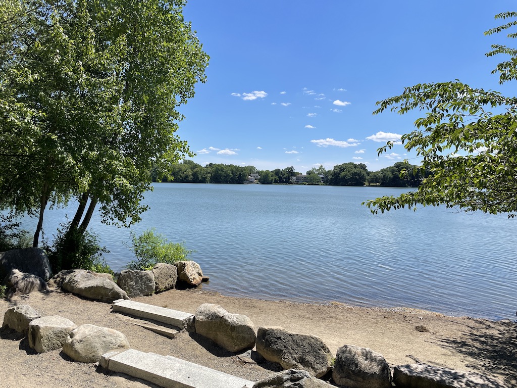 After leaving the Alewife MBTA station, one of the first points of interest will be Spy Pond.