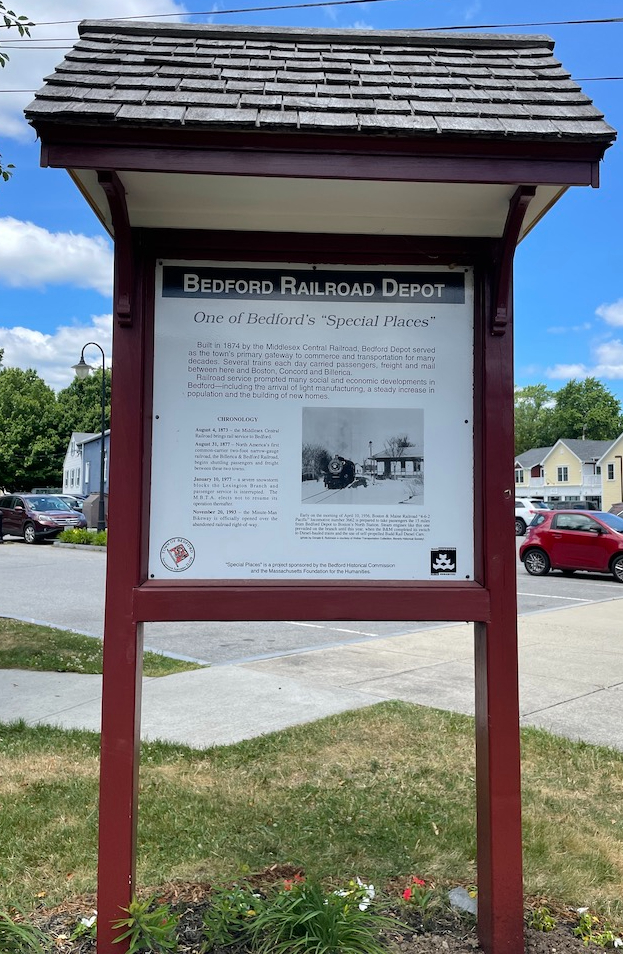 The Minuteman Commuter Bikeway runs from the Alewife MBTA Station in Cambridge, by Spy Pond, through the Arlington Center, through the Lexington Center, and to the Depot Park (old railroad station) in Bedford.