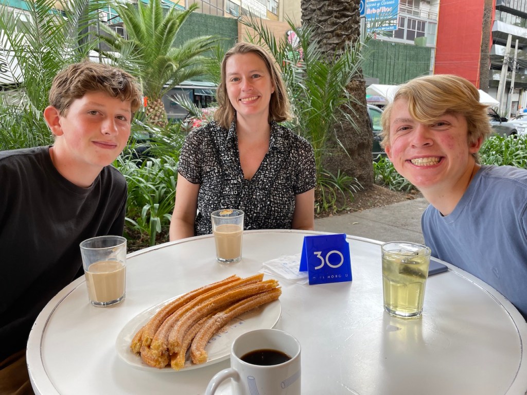 On our second day in Mexico City, we decided to try some activities that might have better appeal to our teenage boys. The previous day was mostly just walking through the historic center, which can be great for adults, but a little boring for teens. To make up for it we took them to the top of the Torre Latinoamericana building to get some great views of the city; visited the Museo Nacional de Anthropologia, arguably the best museum in the city; got lunch in the Bosque de Chapultepec park; took a walk through the Polanco neighborhood; then took them to a Lucha Libre wrestling performance. They agreed that this was a much better day!