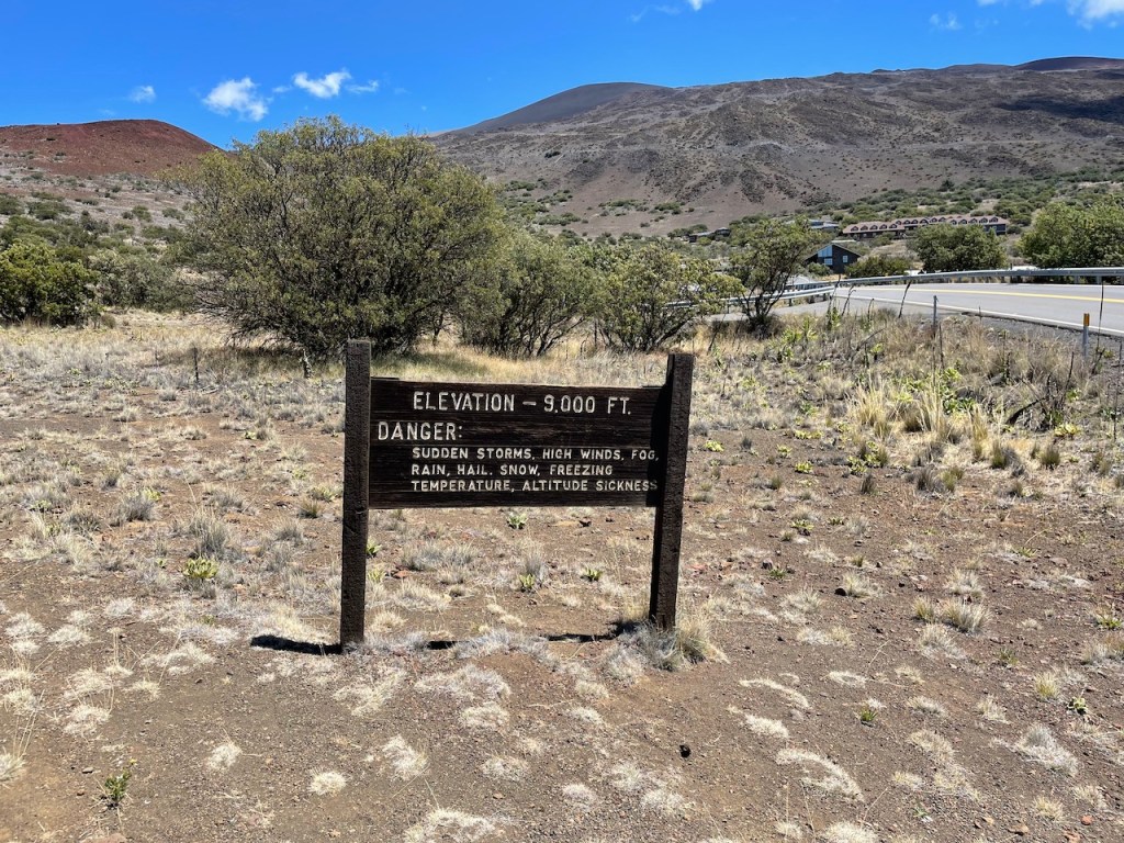 Mauna Kea itself is 14,000 ft, and there’s a visitor center at 9,000 ft. Without a true four-wheel drive vehicle (not just AWD like we had), it is not recommended to go past the visitor’s center. There is a checkpoint station there, and after seeing some of the roads up to just the visitor center, I wouldn’t chance going beyond there with a marginal vehicle.