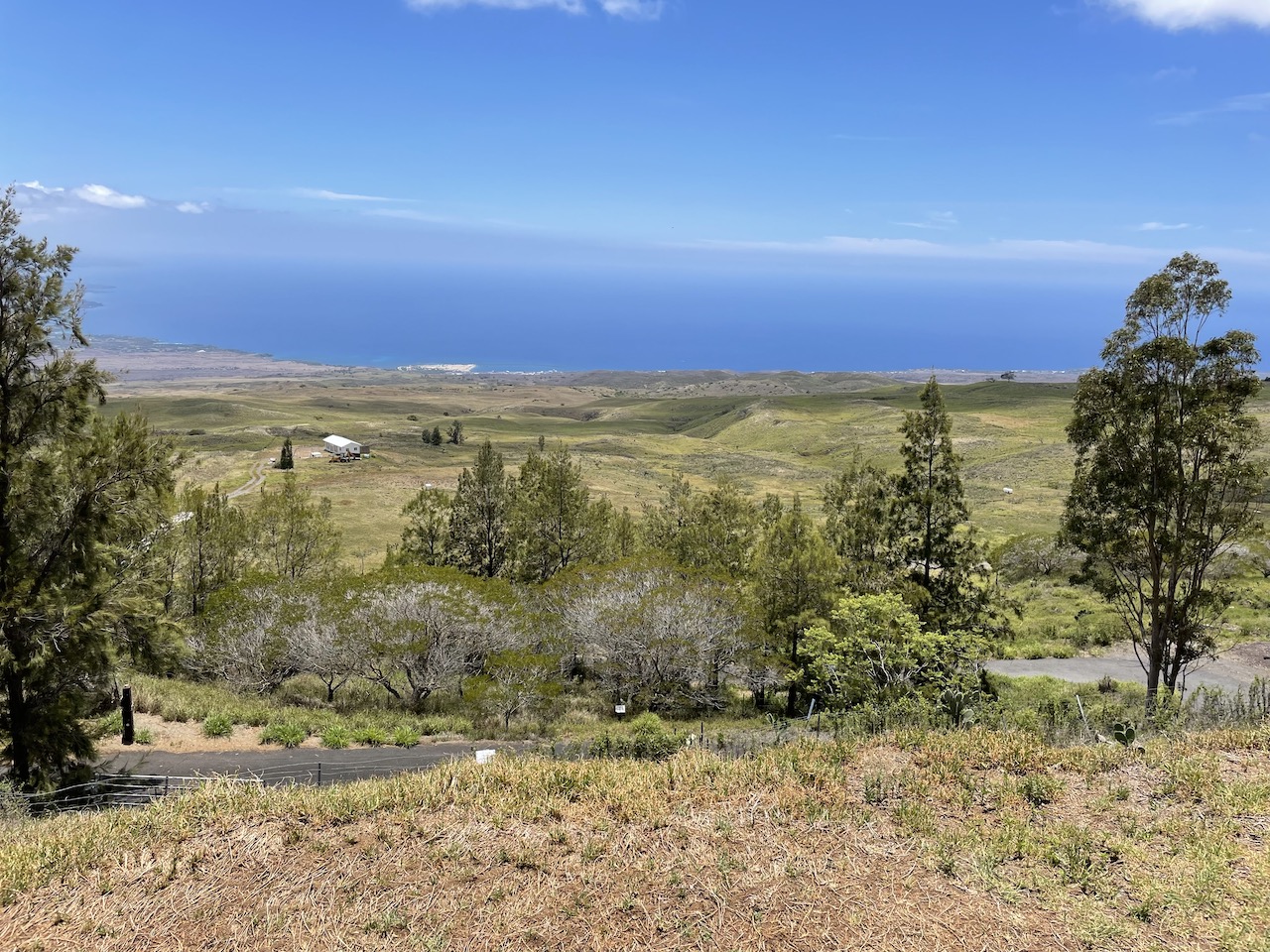 After the trip up the mountain, Jeremy and James decided to explore the northwest of the island. They stopped in Waimea to get a bite to eat, and drove along the high elevation road (Route 250) in the northwest of the island. Unlike the dry oceanside roads there, the road through the mountains was quite unexpectedly lush, with cattle grazing and views of the ocean through the trees. Alas, they didn’t take many pictures. They did photograph the statue of Hawaiian King Kamehameha I in Kapaau towards at the end of the mountain road, since this was near his birthplace: