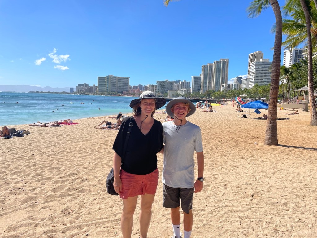 If you are planning a short stay on Oahu where all you want to see is Waikiki Beach, there is no need to rent a car. Our plane arrived just before noon and we used the Uber app to get 2 cars – we had previously learned the hard way that an Uber XL is way too small for 6 passengers plus bags!