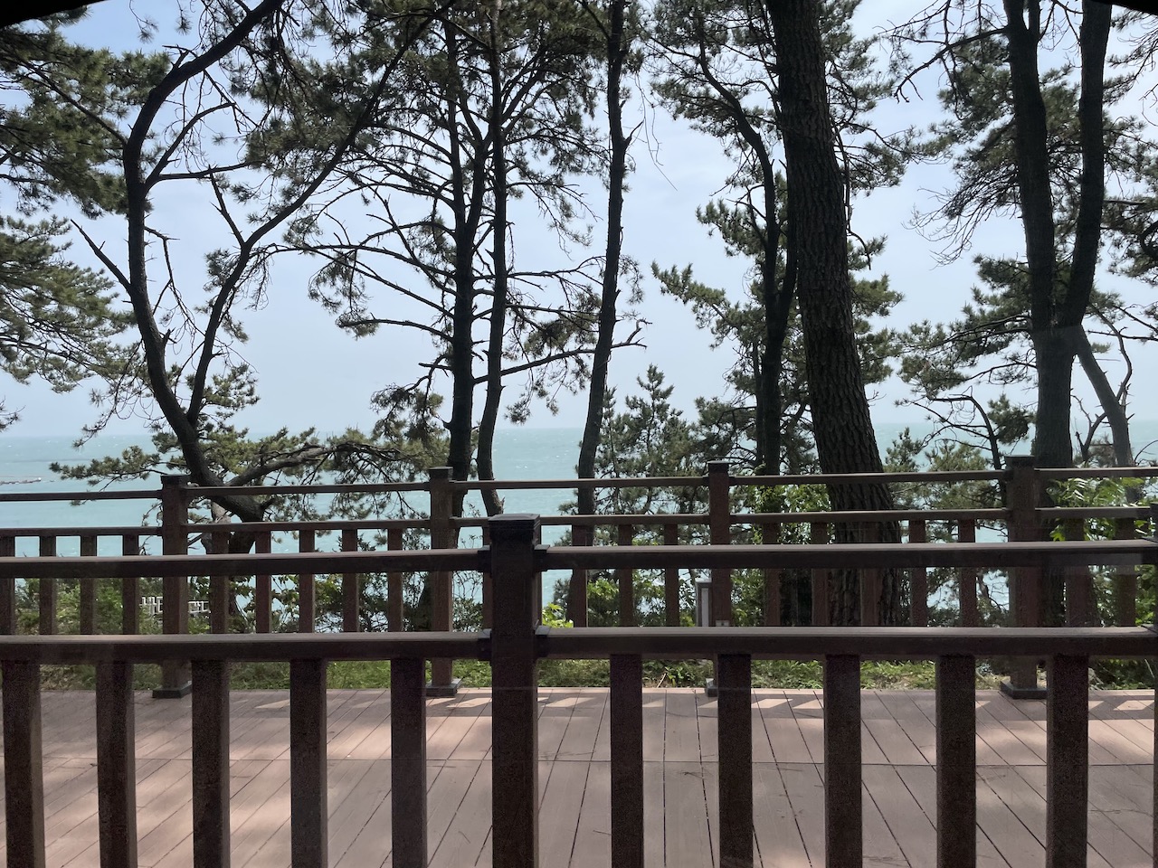 There were a lot of pine trees and our guide told us that the Korean people really like pine trees because they represent resilience. Even though the vegetation is a little different, the area reminded us a lot of the Costal Recreation Trail in Pacific Grove.