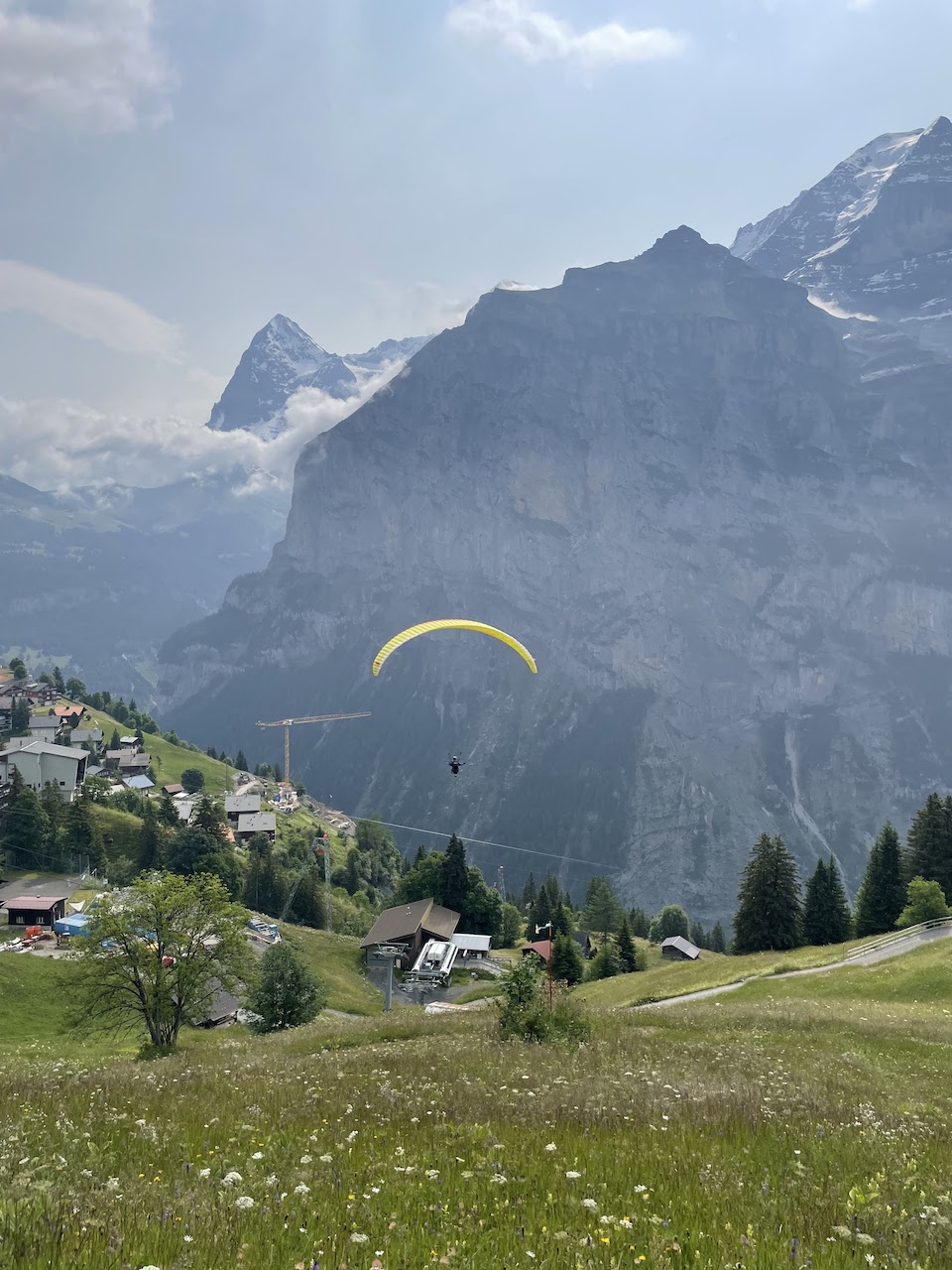 Once we got to Mürren and arrived at the meet point, we walked for about 10 minutes up a slightly steep hill on the edge of town. This was probably for safety, to get some speed and buoyancy before getting to the cliff or town.