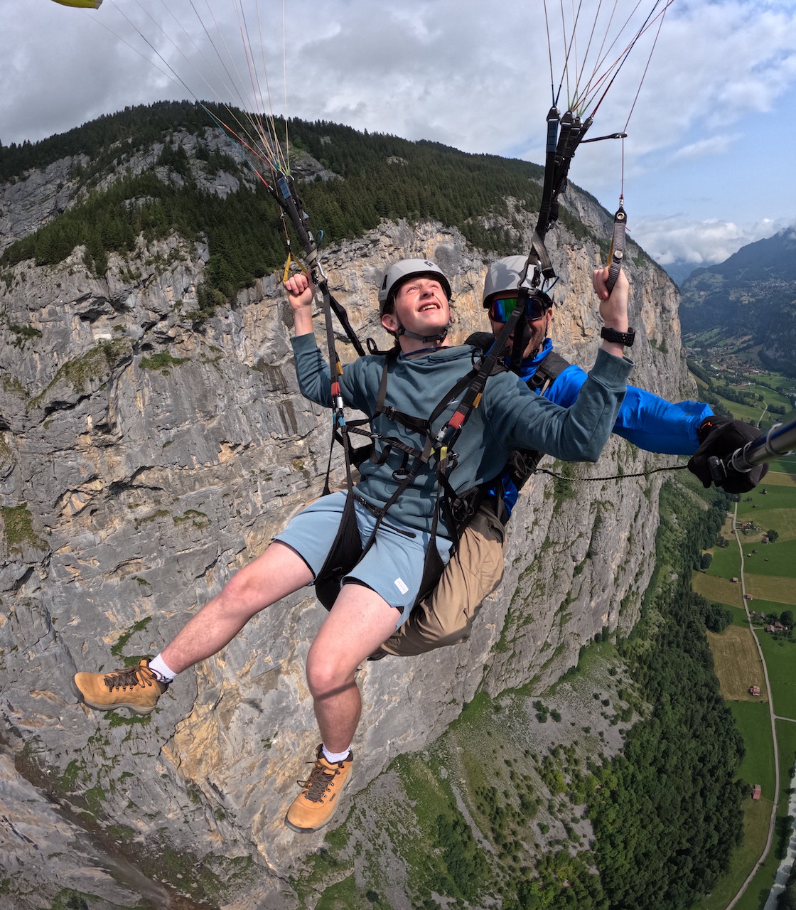 On our trip to Switzerland in 2019, one of our kids saw people paragliding over the Lauterbrunnen Valley and decided that he needed to do this one day. Now that he is a teenager, we decided to go ahead and allow him to participate in this thrill activity. Traveling with teens is much different than traveling with toddlers! While I tried to talk myself into doing it with him, I ended up chickening out and let him go on his own. Though we did witness another entire family do it together.