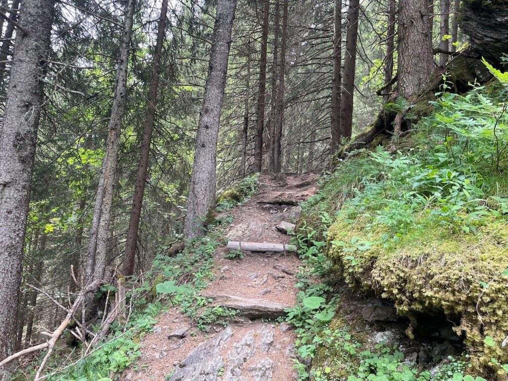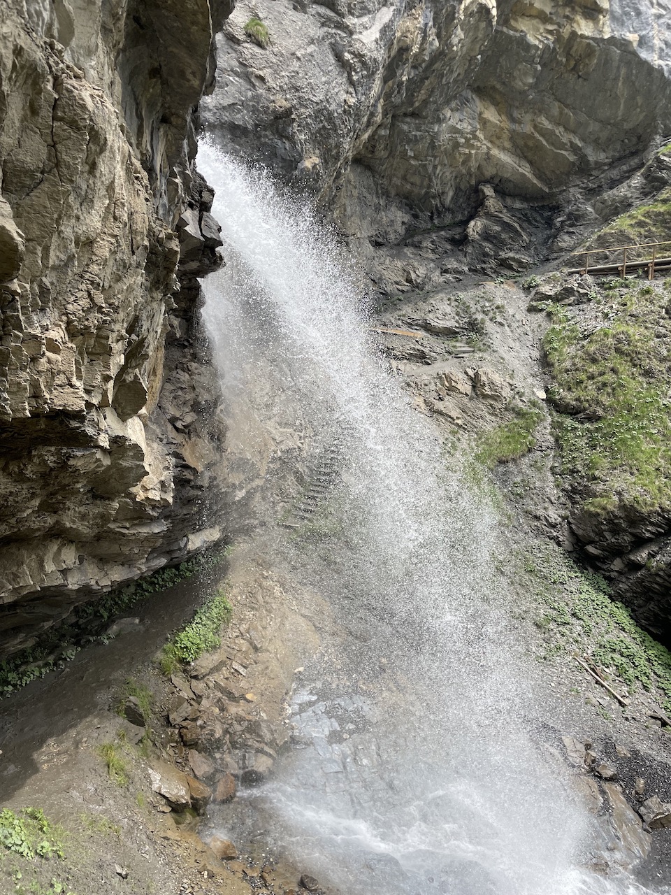 Note that sprutz means “splash” and vorsichst means “caution”. If you follow this particular route, you will be taken down a steep path that will go behind a waterfall – sprutz – and then will continue back up the fairly steep hill – vorsichst – and back to the main path that will lead you down to Gimmelwald.