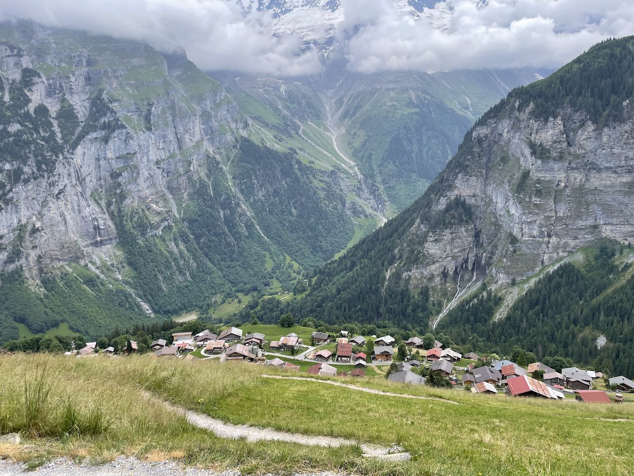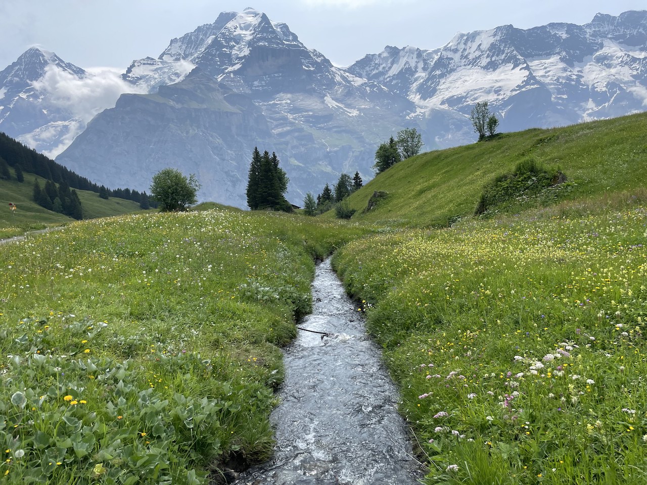 Eventually, the forest will end and you will have a beautiful view of Gimmelwald. If your calves are still in good shape, there is a steep path that will take you directly through the meadow to town. If you are done with steep hiking, consider taking the longer, but less steep, road to town.