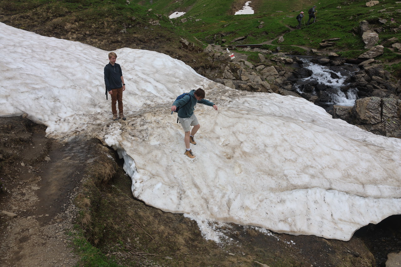 Now that our slow and steady climb was done, we were ready for the steep descent to Bachalpsee. What a relief to know that the uphill climb was over!