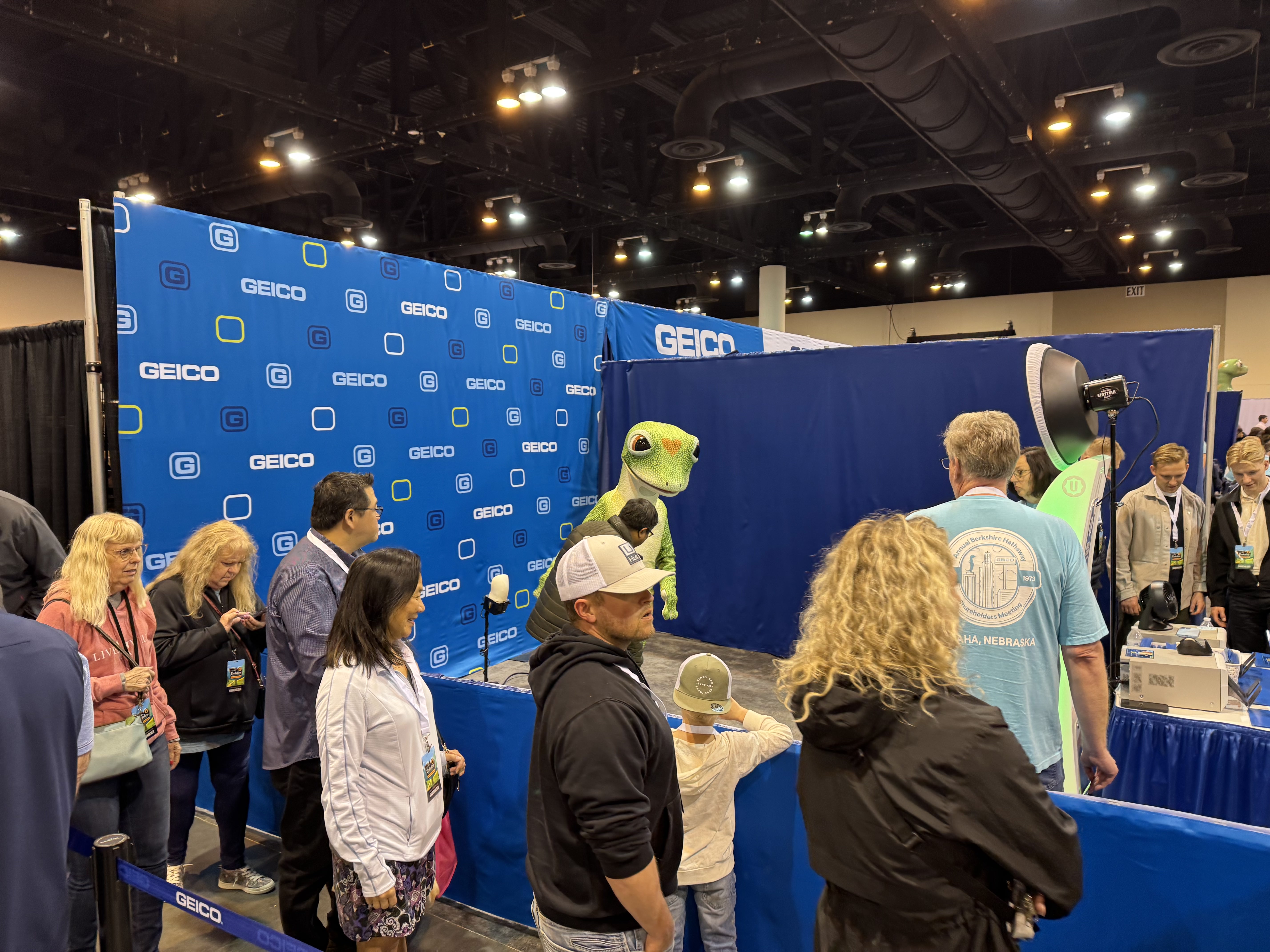 Some of the subsidiaries like Sees Candies or Dairy Queen had obvious things to sell (I confess I ate some of my commemorative Sees candy the next day after the motel breakfast proved quite subpar). Others like Clayton Homes had an interesting tour of a model home. BNSF railroads had a large model train exhibit. And Fruit of the Loom had plenty of commemorative tshirts and hoodies to buy. You could also wait in line to get a photo with the “Geico gecko”, which I did when the line got shorter.
