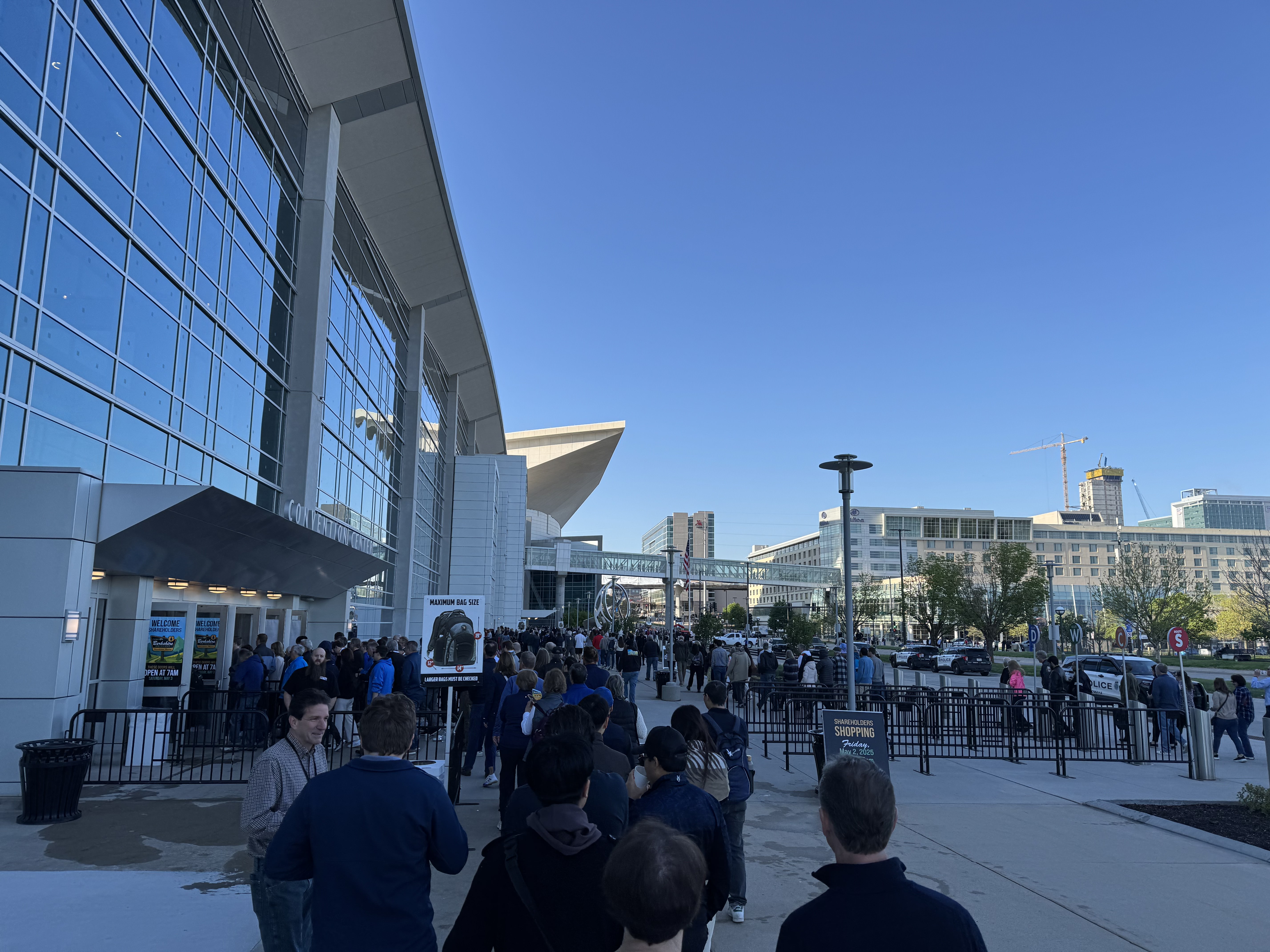 One thing that I underestimated was the arrival time. The meeting started at 8am, with the doors opening at 7am. Some people apparently camped out some chunk of the night. I arrived to the area just before 7am, but there was an insane mass of humanity there clamoring to get in. Felt more like a Taylor Swift concert than a stockholder’s meeting in that regard.