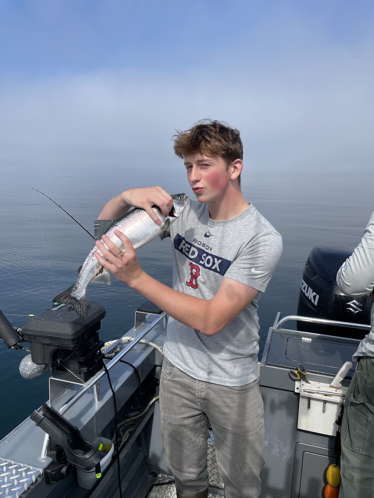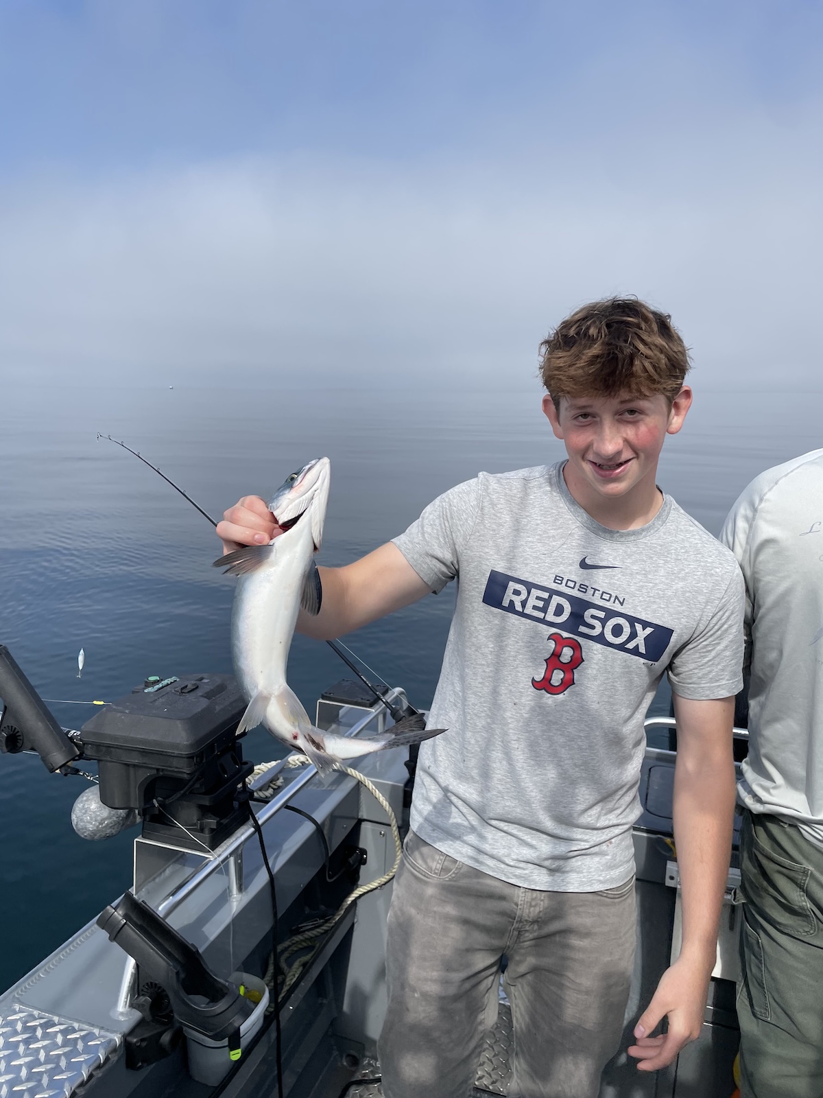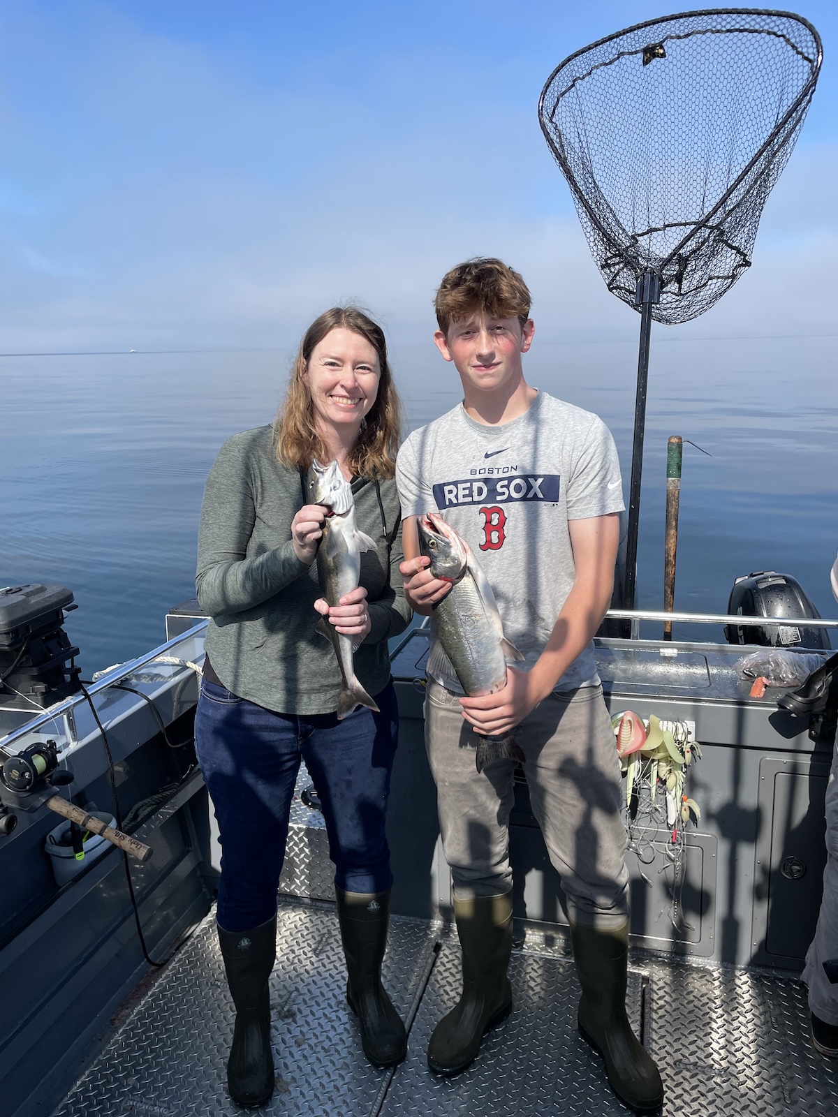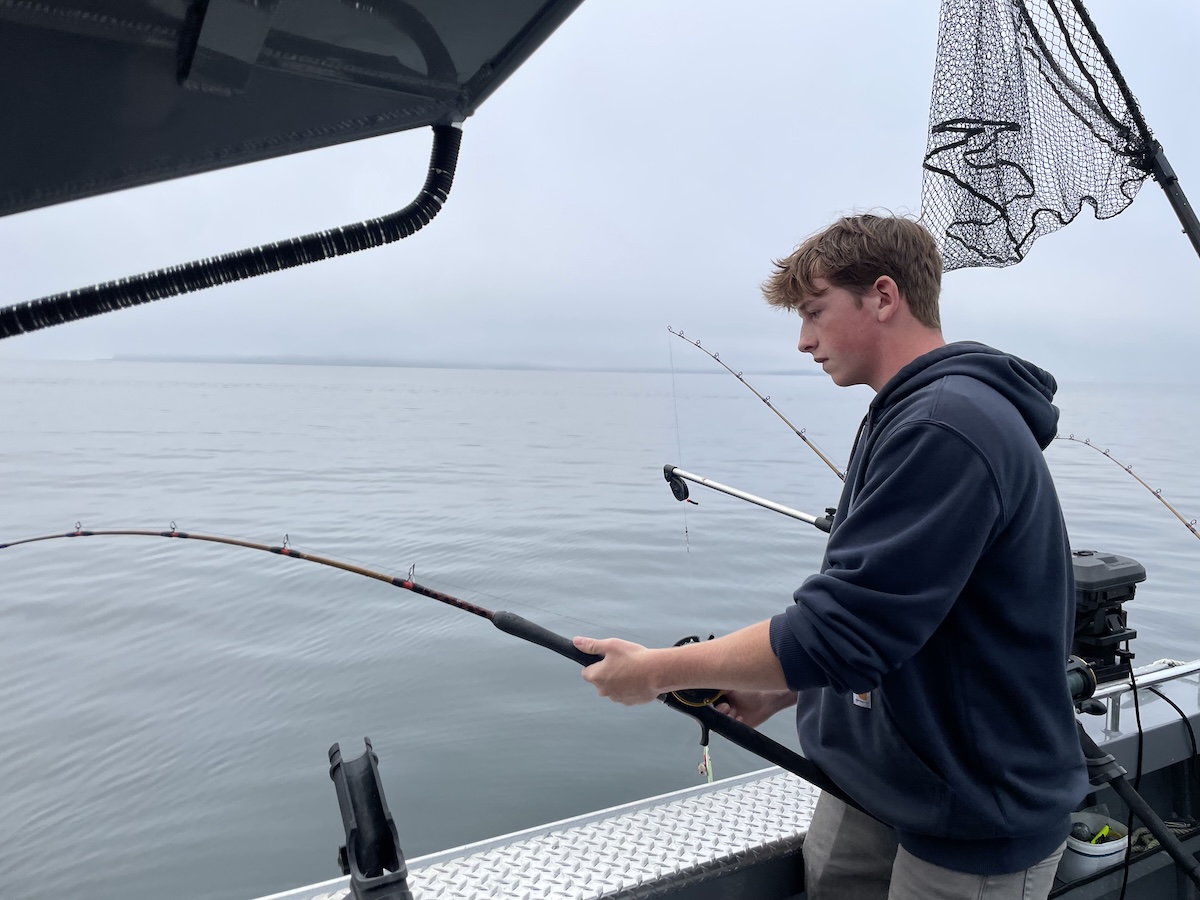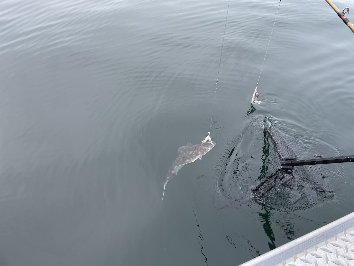 John really liked how quickly he was able to catch fish, as they were quite plentiful. He was trying to see if he could catch another fish before the captain had removed the previous one from another line. A few times, the fish were so abundant that 2 or 3 of the folks had caught fish and were waiting for the captain to help net and store the fish. Typically the halibut can wait, but if you don’t net the salmon right away, they will escape the hook. They lost several fish due to this problem! Also, when fishing for both salmon and halibut, you need to be careful that the lines don’t tangle.