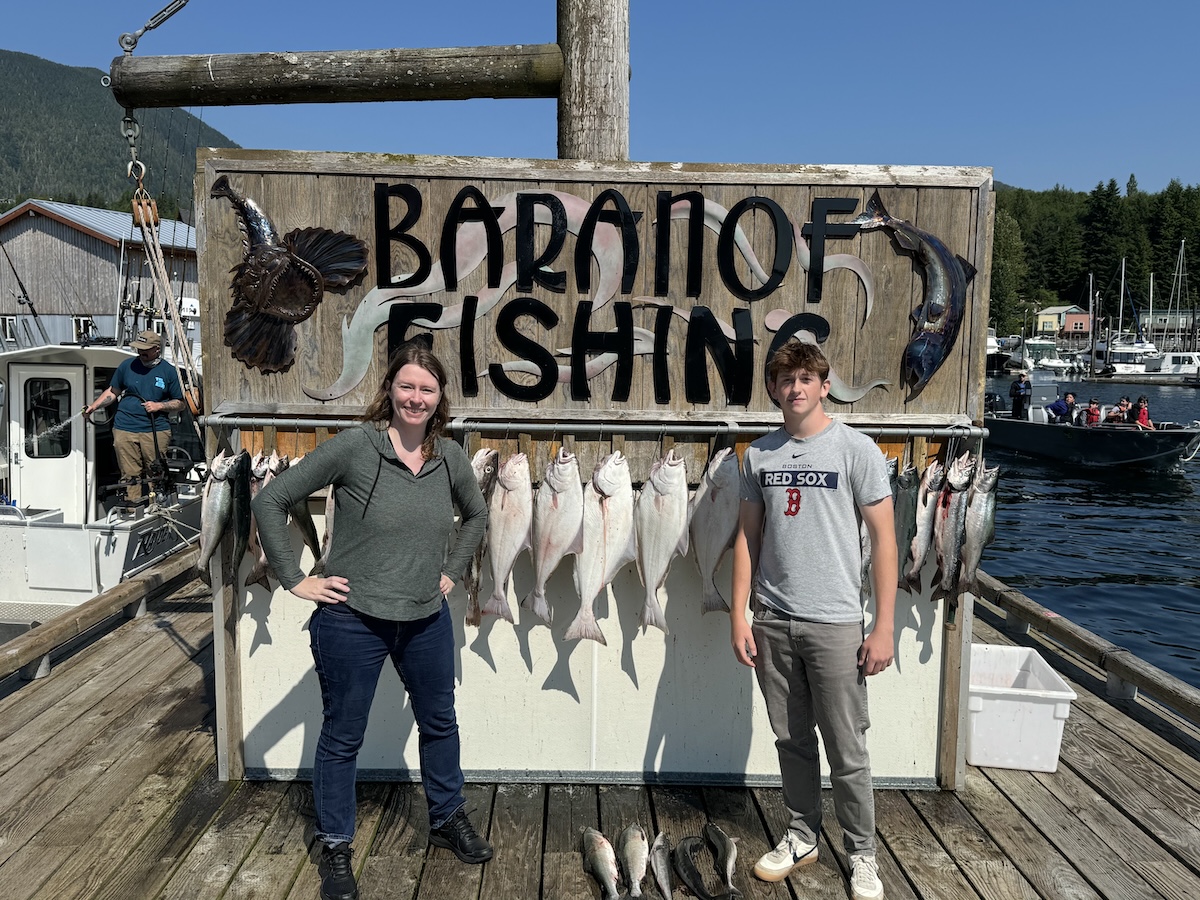 When we started researching, we found that many of the charter fishing companies would only charter a whole boat (which started at a capacity of 4-6 people). For two people, this felt slightly overkill. However, Baranof Fishing Excursions (not a sponsored link, just a happy customer) did do shared charters. Jennifer and John ended up sharing the boat with a group of 3, which worked well.