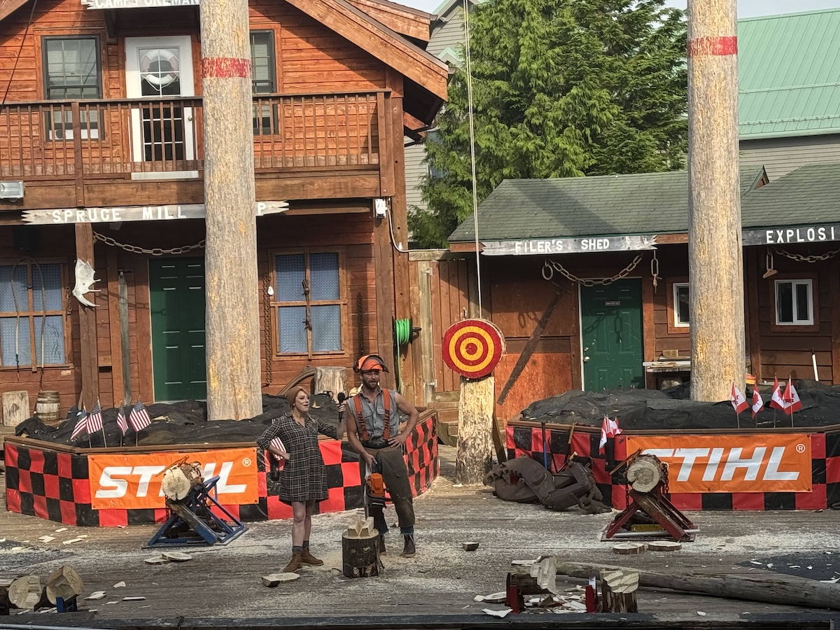 Meanwhile, James and I went to the first showing of the Great Alaskan Lumberjack Show, which was near the dock. The cruise ship let us out by 7am, so the 8am showing worked well.
