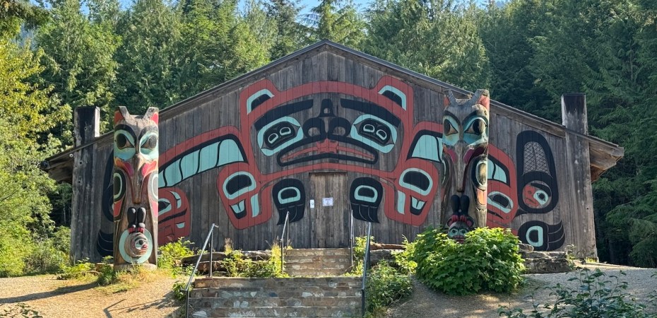 After the show, we got in an excursion van to go to the Saxman Native Village. In the first part, we went into a building painted with Native art, where the had locals from the tribe performing a typical Native dance. James and I thought it was fairly interesting, though e.g. it wouldn’t have been our youngest’s cup of tea.