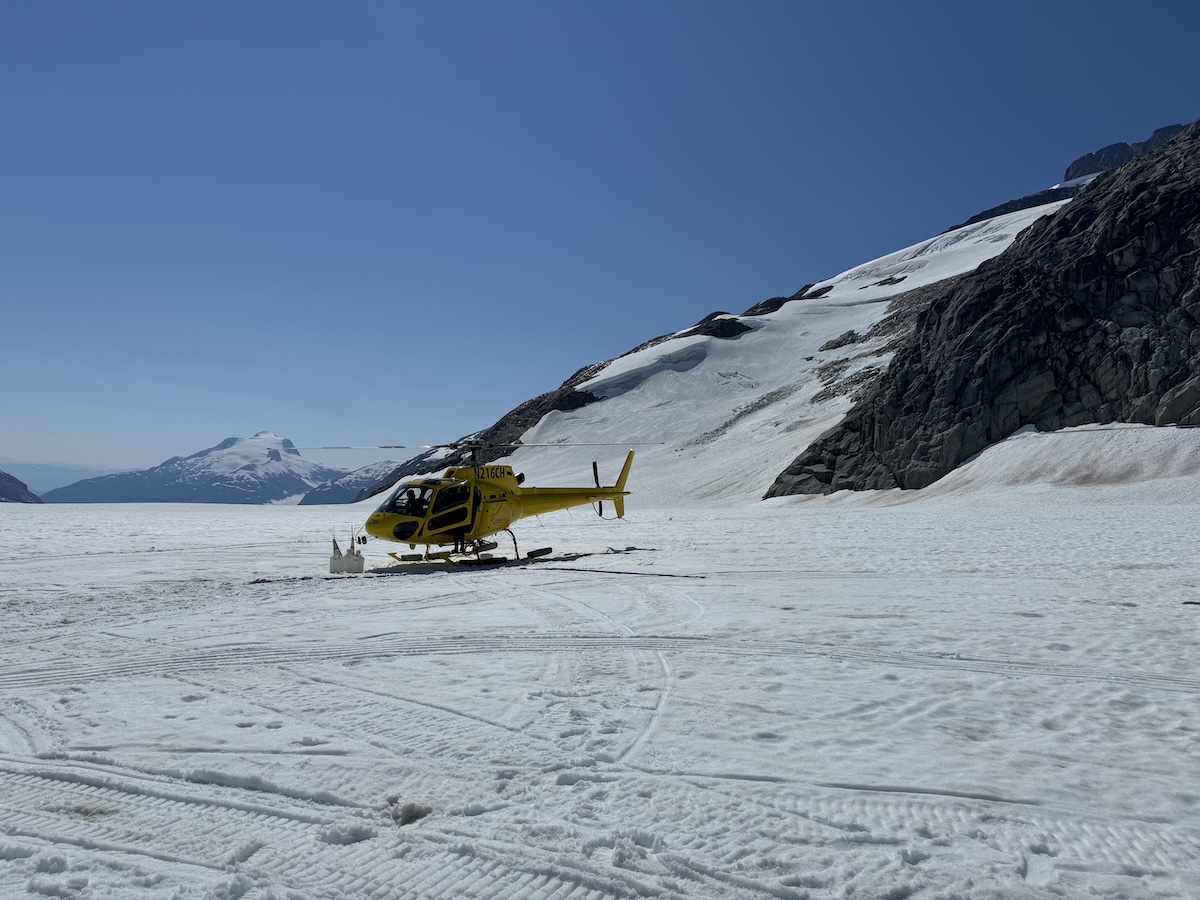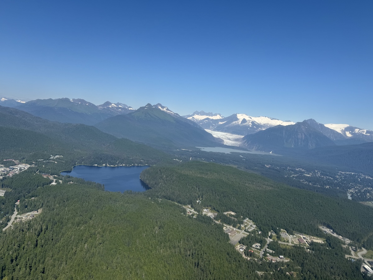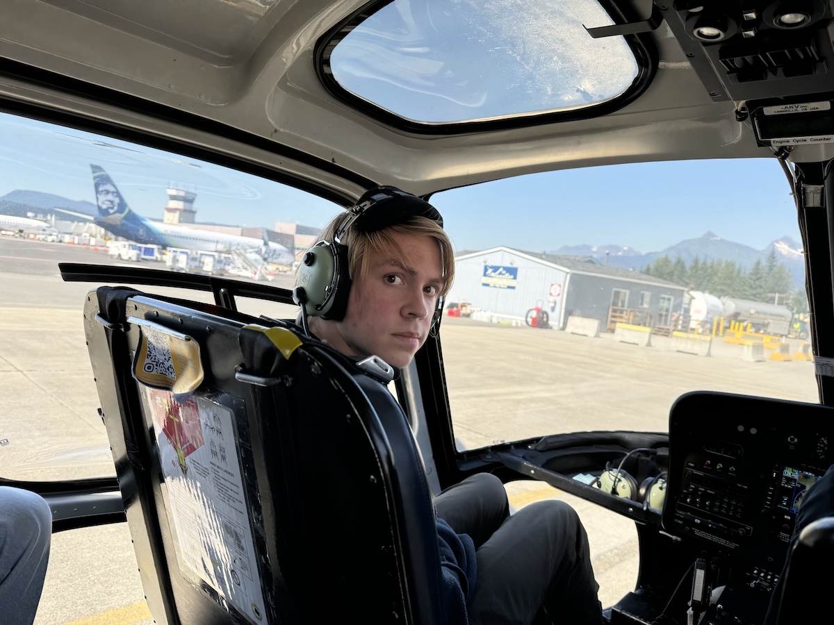 The actual excursion started with a pick up near the docks; the company had a van that took our group to the Juneau airport. At the airport, they gave us some safety briefings and prepped us for the trip. It seemed like they scheduled people to effectively come in groups of about 15-20 per half hour, enough to fit in their fleet of 3 or 4 helicopters. From there, we took off in a yellow helicopter, getting scenic views of surrounding Juneau.