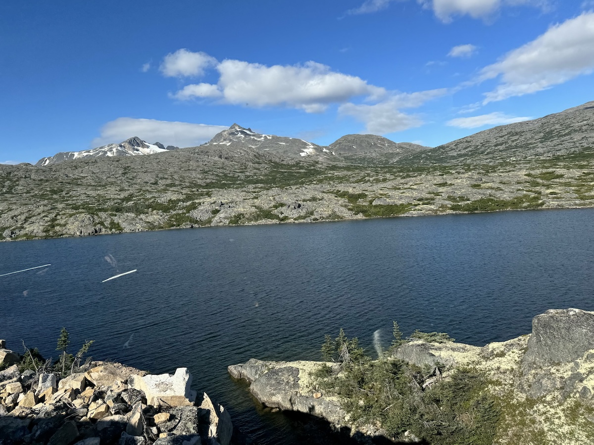 Once we got to the summit, we crossed into the Canadian side, in British Columbia. At that point was a lake. Since train did not stop in Canada, there was no passport check involved. The train effectively did a small loop right past the border. If you do want to be able to say that you went to the Yukon Territory, you do need to take the longer tour, though.