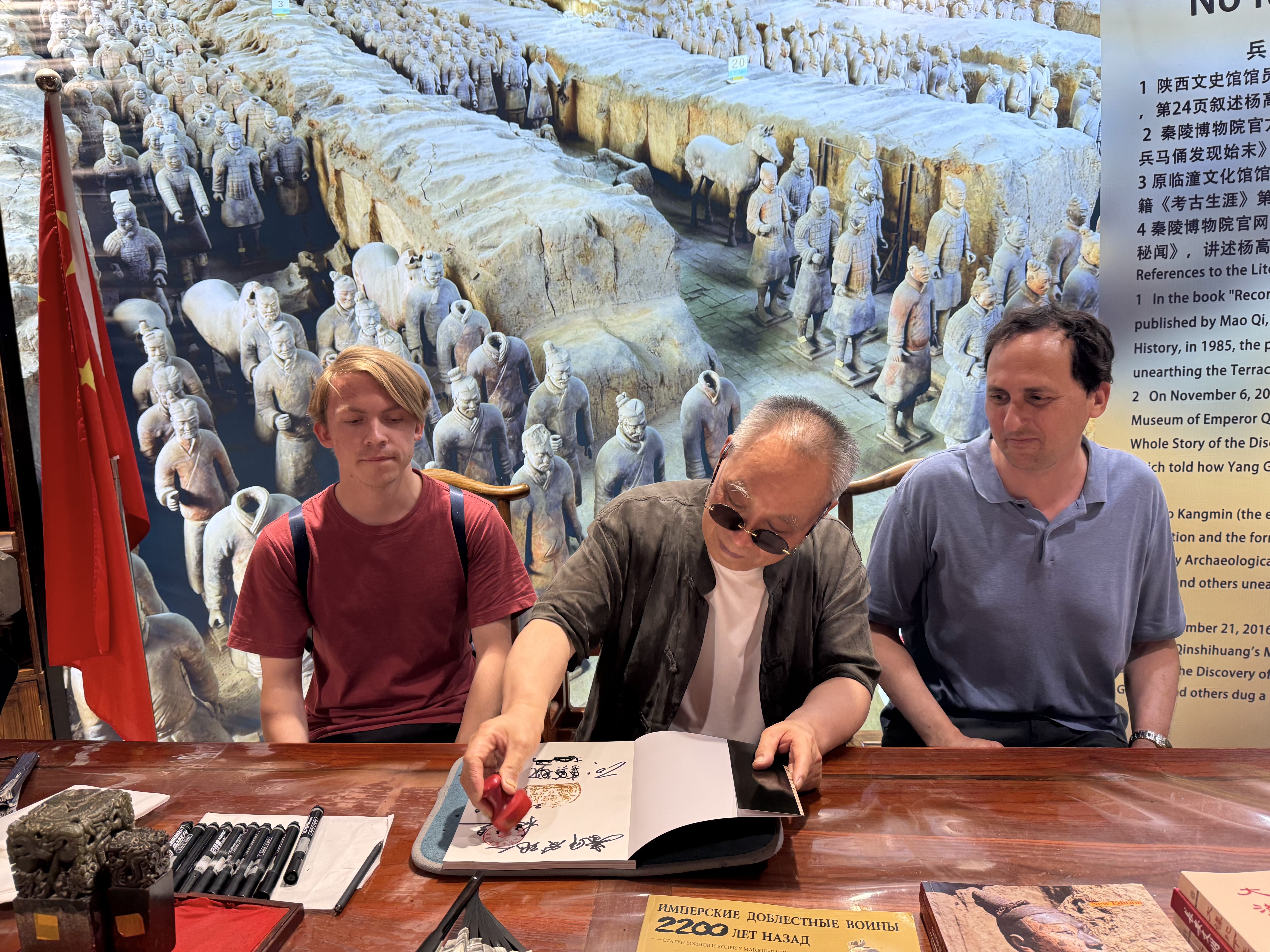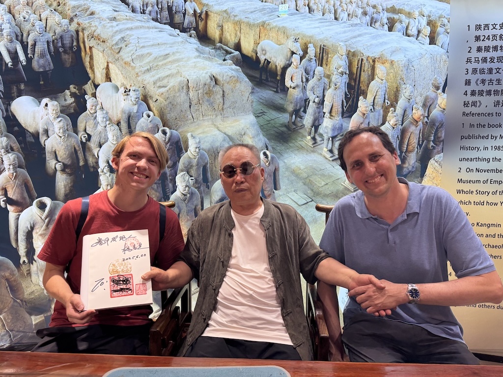 One question people sometimes ask: what happened to the group of farmers who discovered this archeological treasure? Our guide indicated that initially in the 1970’s, they were mostly shafted. But over time as the profile of this site grew, their stature grew as well. On our way out, we were introduced to one of the original farmers who is still alive, but these days mostly sells/signs books and smiles for photos (see our photo with him below). Our guide indicated that as a result, he’s done reasonably well for himself, which is good to hear.