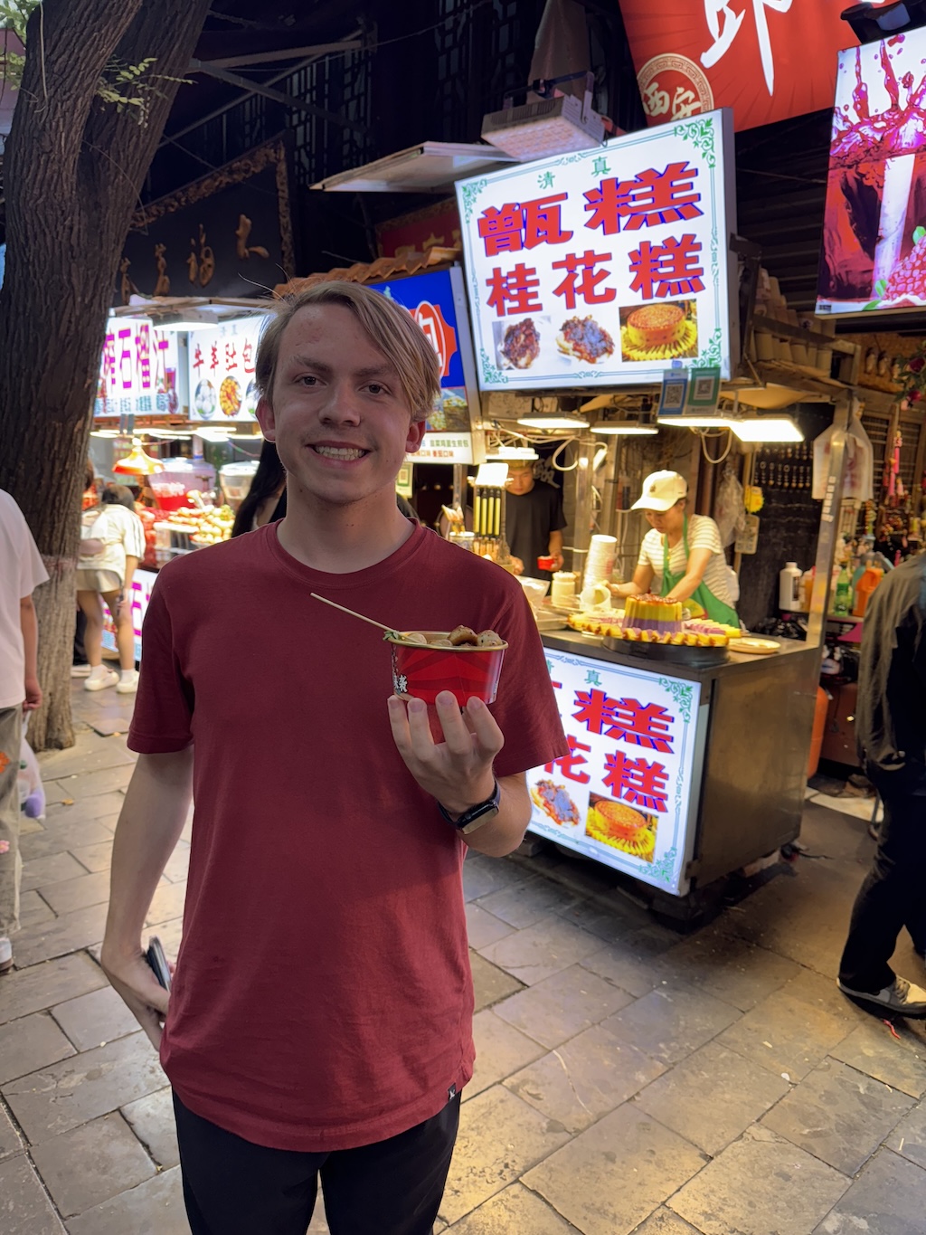 That evening and the following day, we had somewhat more time to explore on our own. We rented bicycles that were available on top of the city walls and biked the distance of the walls. After biking, we explored market stalls and stands, and had a nice lunch at a place we found. As our time came to a close, we spent further time exploring the areas around the center, sampled more food, and eventually made it back to our hotel to pick up our luggage for an evening flight to Shanghai.
