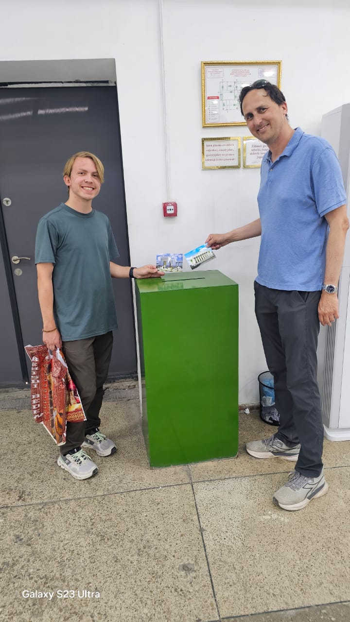 We had a late lunch, where we enjoyed shawarma sandwiches. In addition, we went to the nearby market, where we bought a few souvenirs, and some a couple of postcards. We wrote the postcards – the only ones of our trip (how often does one get a postcard from Turkmenistan?), and our guide took our photo dropping them in the mailbox.
