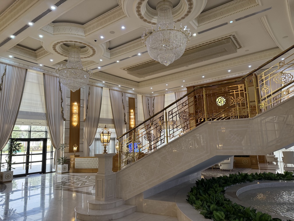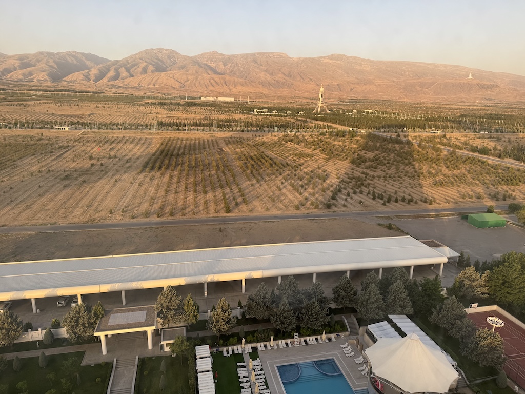 On our second day in Turkmenistan, which we did as part of my son’s graduation trip to the Silk Road, we woke up in the capital, Ashgabat, ready to see the surrounding area. The actual hotel and its grounds were quite nice. Since Turkmenistan currently requires tourists to be on a guided tour (see our previous post for more details), we were met by our guide and driver.