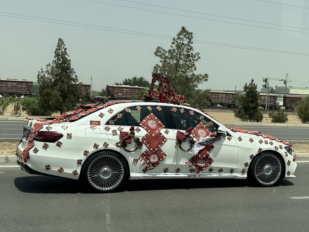 While we were driving around town, we learned that it was common to decorate one’s car for events like a wedding or graduation – below is an example of such a decorated car.