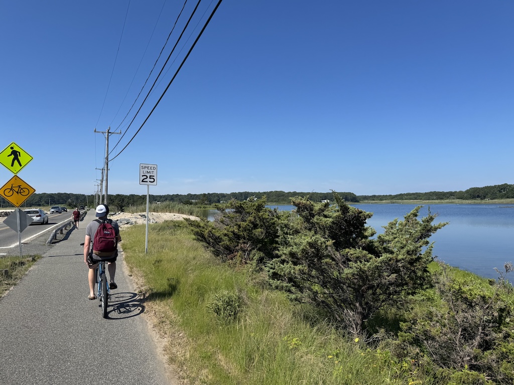 After getting our bikes, the route out of town towards Edgartown was fairly straightforward. At the edge of town, there was a separate bike trail, where we were biked along a small lake.