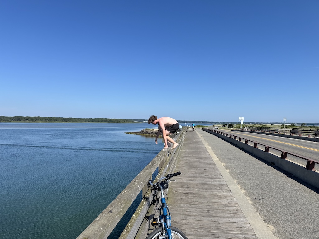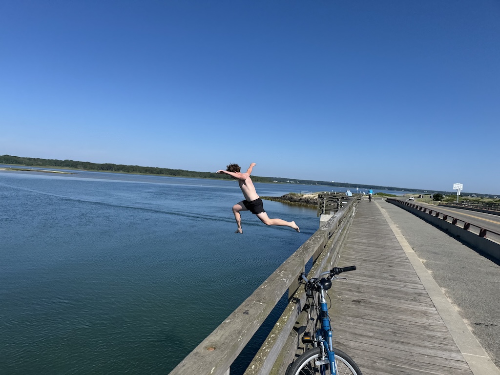 Along the route is the “Jaws Bridge,” from the scene in that movie. Since my son heard it was apparently a tradition to jump, he opted to do so. Note that this is technically not legal (with a posted sign saying so), even as we saw lines of folks jumping later in the trip. He mentioned that the jump is higher than it looks. (Also, we later learned that, alas, there was a fatal incident in 2022 due to undercurrents, so stay safe!).
