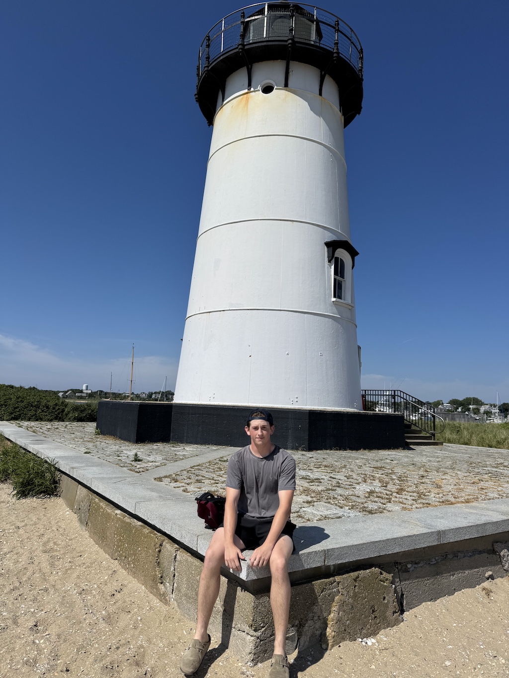 From there, we continued the 30 minute bike ride to Edgartown. We locked up our bikes and wandered for a little while, as there were plenty of small shops. While we didn’t get many pictures of the town, we did walk out to the light house and take a picture there: