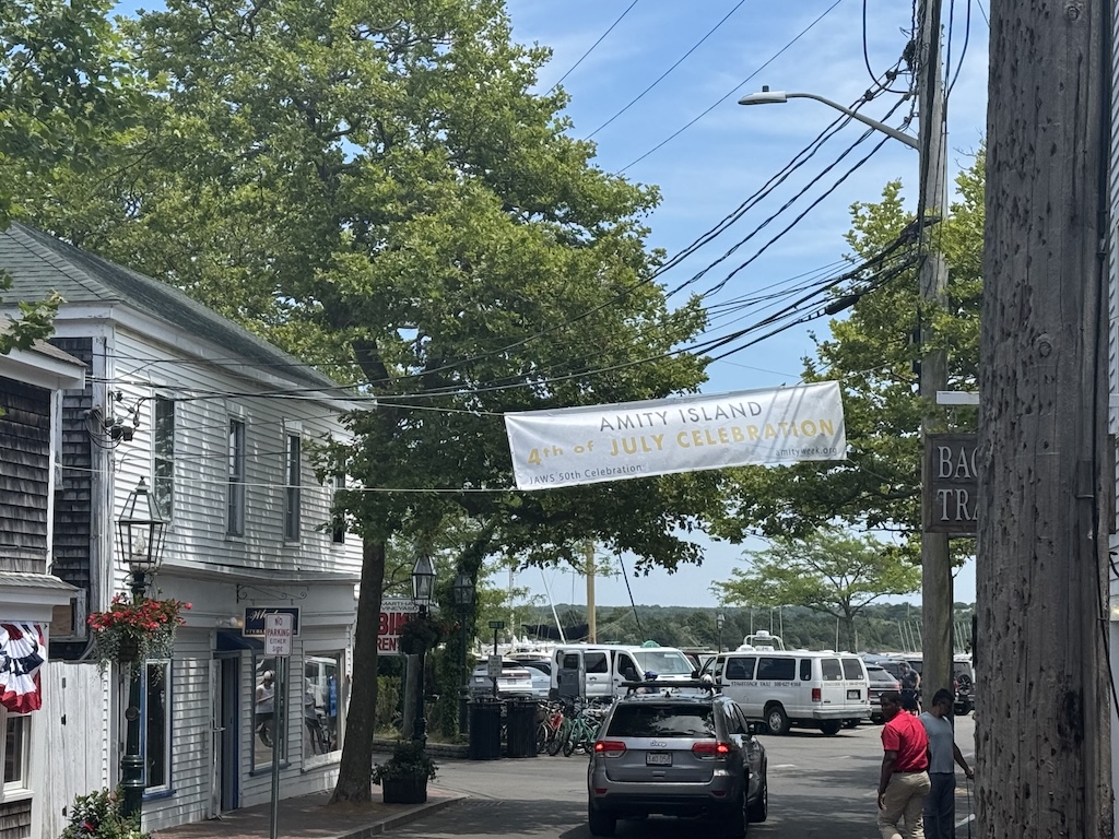 When we were there, it was the 50th anniversary of the movie Jaws being released. So we saw, then, and over the weekend, references to Jaws and “Amity Island” (its name from the movie). Edgartown was where most of the town scenes were filmed.