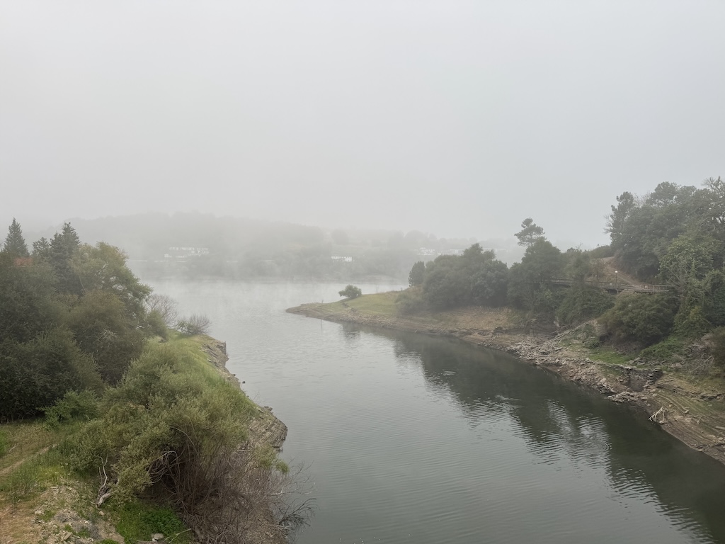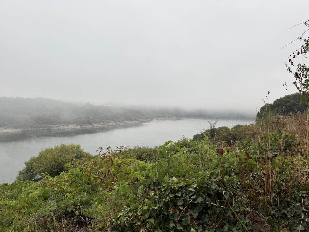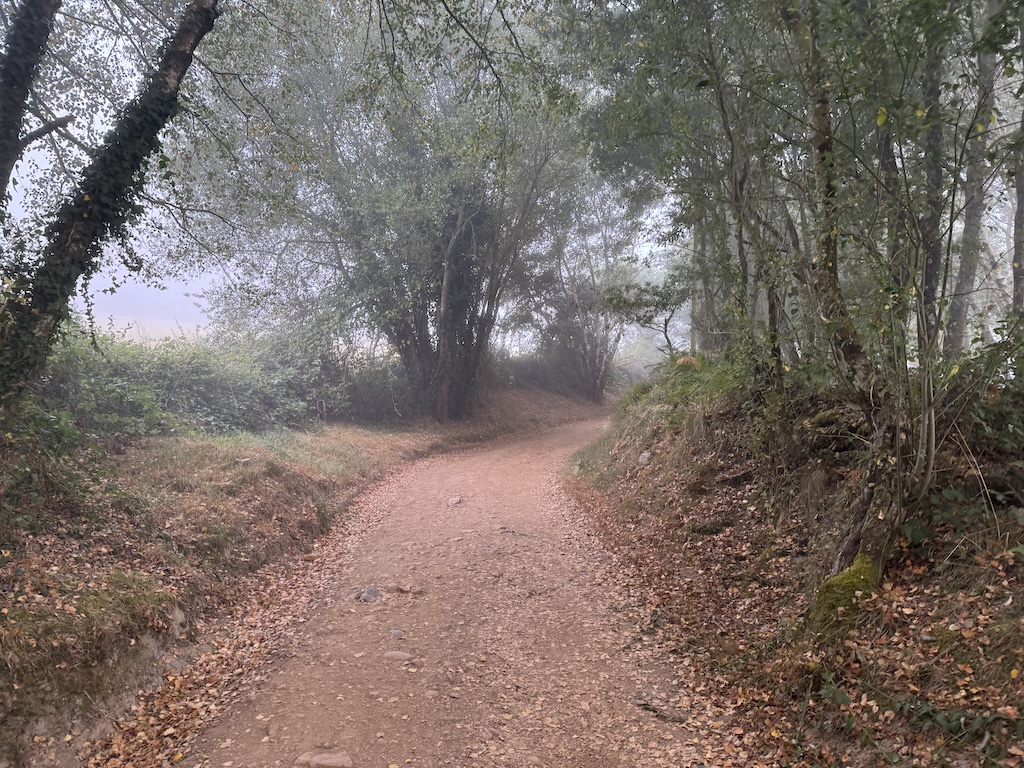 In any case – I got up, put my luggage in the pile for the transfer service, and had breakfast. I got going on the route around 8am. It was foggy and cool outside, but the fog burned off by mid-morning. The fog made the area around the river look more mysterious than it had the afternoon before.